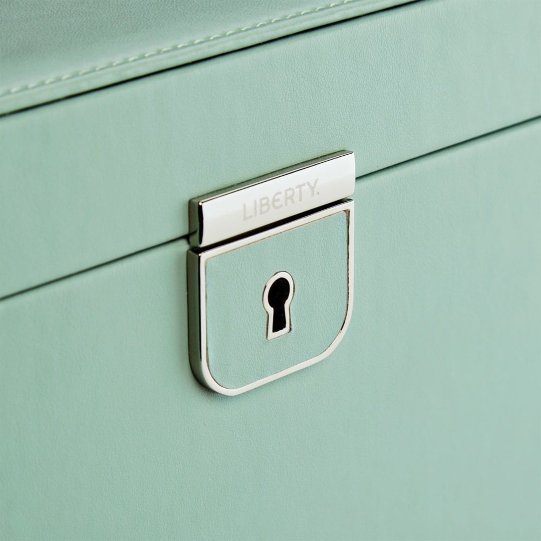 The WOLF X LIBERTY Large jewellery box combines heritage, design and master craftsmanship. The exterior is embossed with Liberty's iconic Ianthe motif, while the inner compartments in Ultrasuede with LusterLoc™ lining also feature Ianthe design elements.