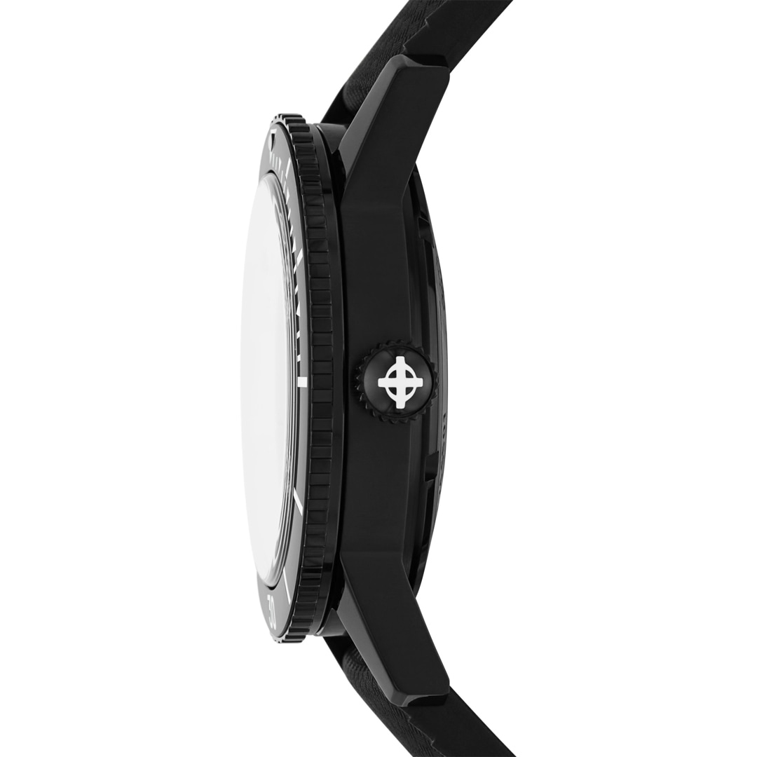The 40mm black DLC-coated case and black ceramic bezel insert provide a sleek yet robust aesthetic, while the Swiss-made STP 6-21 automatic skeletonized movement is beautifully showcased through both the dial and exhibition caseback. Completing the look is a black Tropic rubber strap, offering both sportiness and comfort.