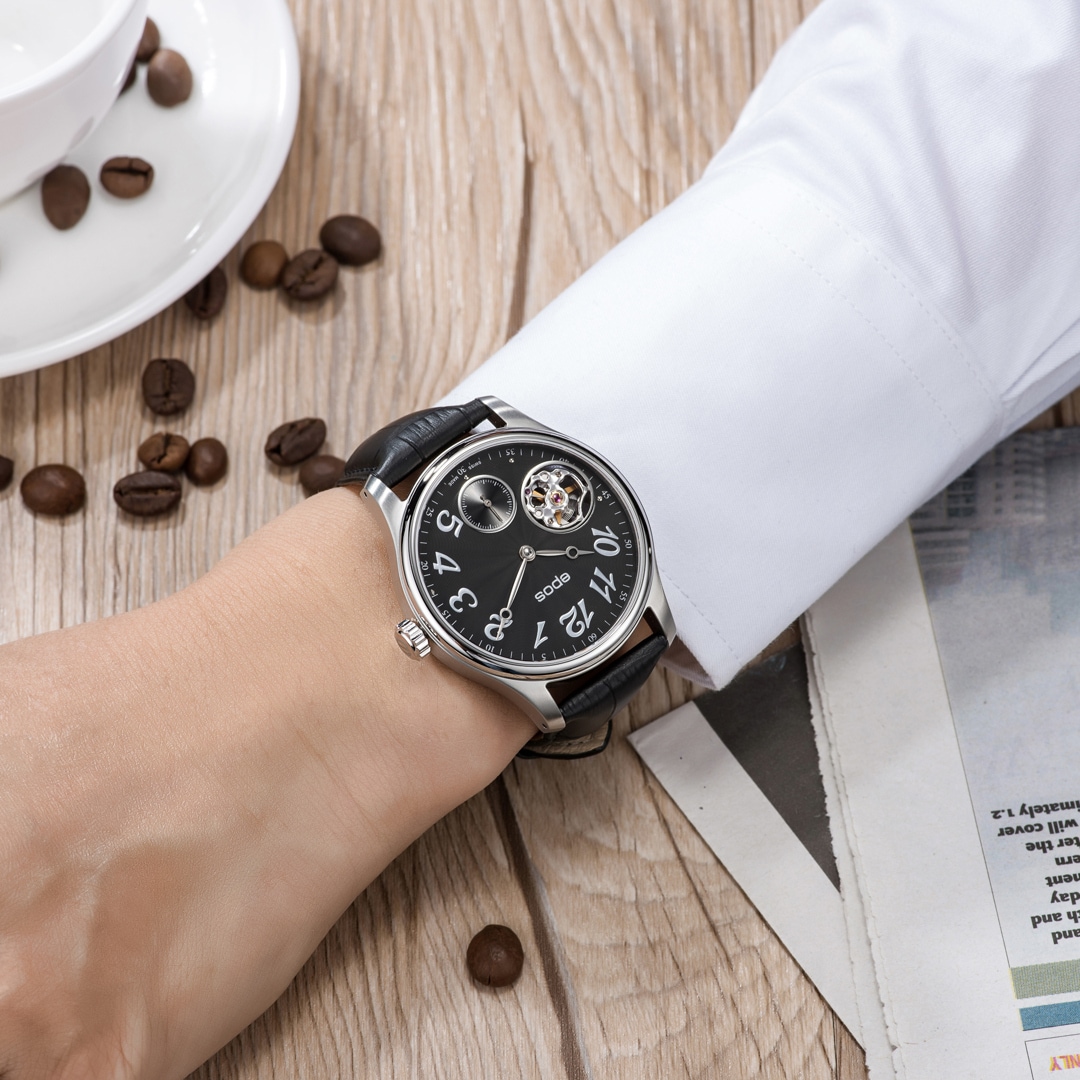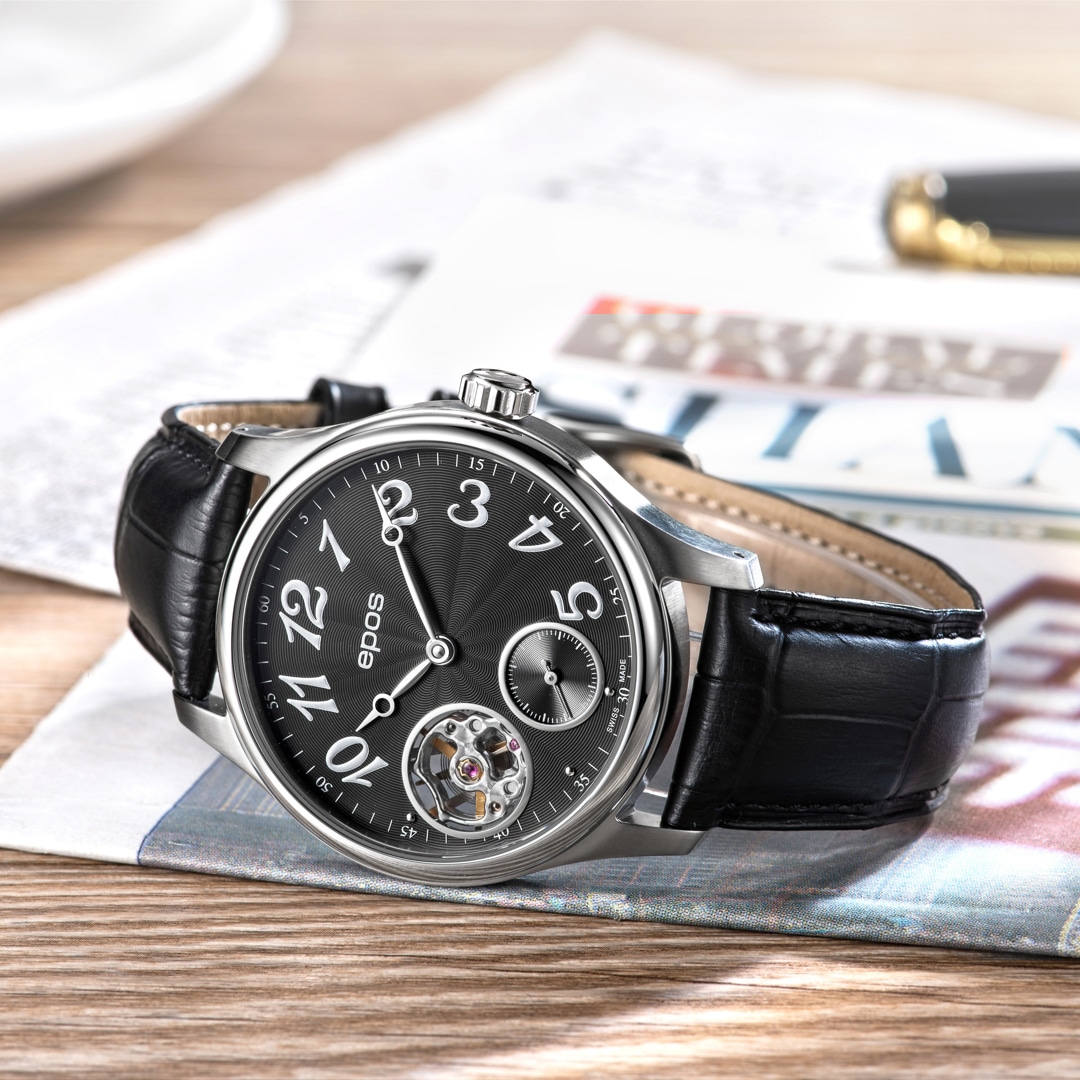 Die Epos Artistry 3369 Open Heart vereint elegante Handwerkskunst mit klassischem Design. Das 42,7 mm Passion-Gehäuse rahmt ein Zifferblatt mit feiner Guillochierung und applizierten arabischen Zahlen, während das halbskelettierte Unitas 6498 Uhrwerk mit aufwendiger Gravur Einblicke in die Mechanik bietet – ein stilvoller Ausdruck von Präzision und Raffinesse.