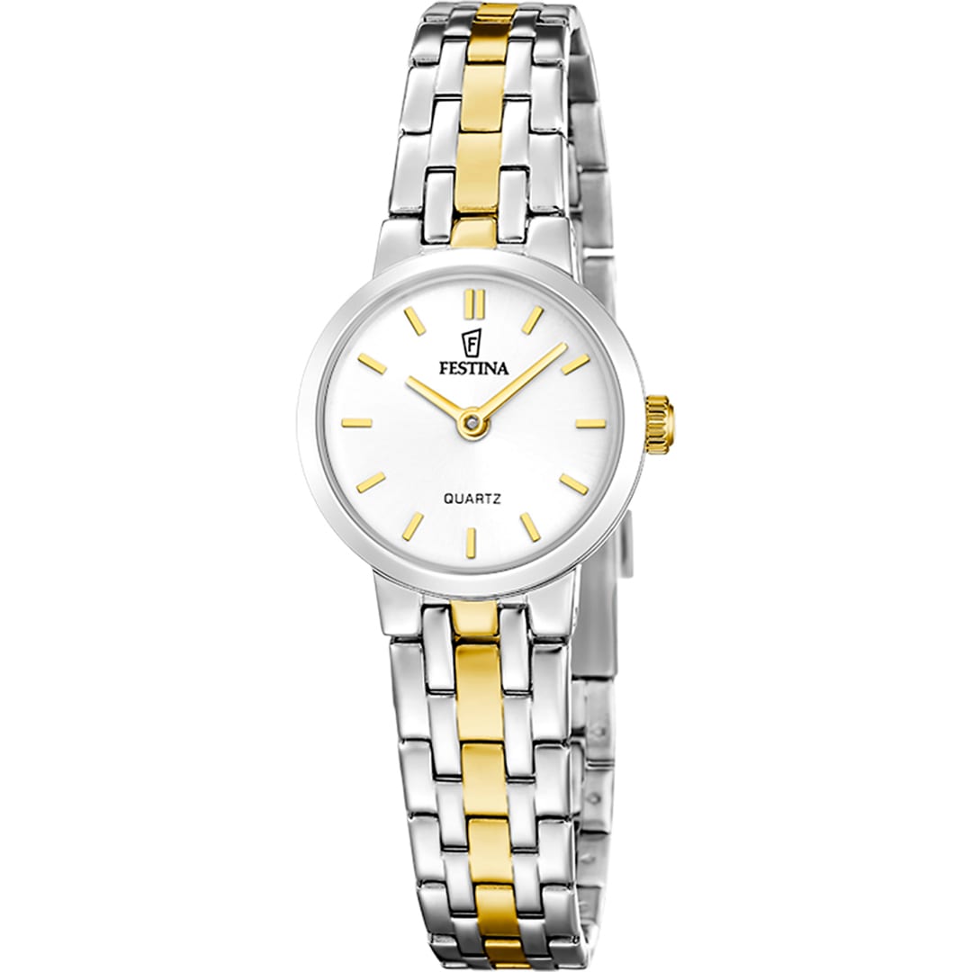 Diese Festina Mademoiselle Uhr konzentriert sich auf das Wesentliche: zeitlose Ästhetik und klare Linien. Ihr besonders schlankes 23mm Gehäuse aus Edelstahl macht sie zu einem dezenten Highlight und einem perfekten Accessoire für schmalere Handgelenke. Das Gliederarmband fügt sich nahtlos an das Gehäuse an und sorgt für einen eleganten Look sowie hohen Tragekomfort. Das aufgeräumte Zifferblatt ist dank der schlichten Indizes klar ablesbar und wird durch zuverlässiges Mineralglas geschützt. Ein stilvoller Begleiter, der femininen Charme mit klassischem Uhrendesign mühelos verbindet.