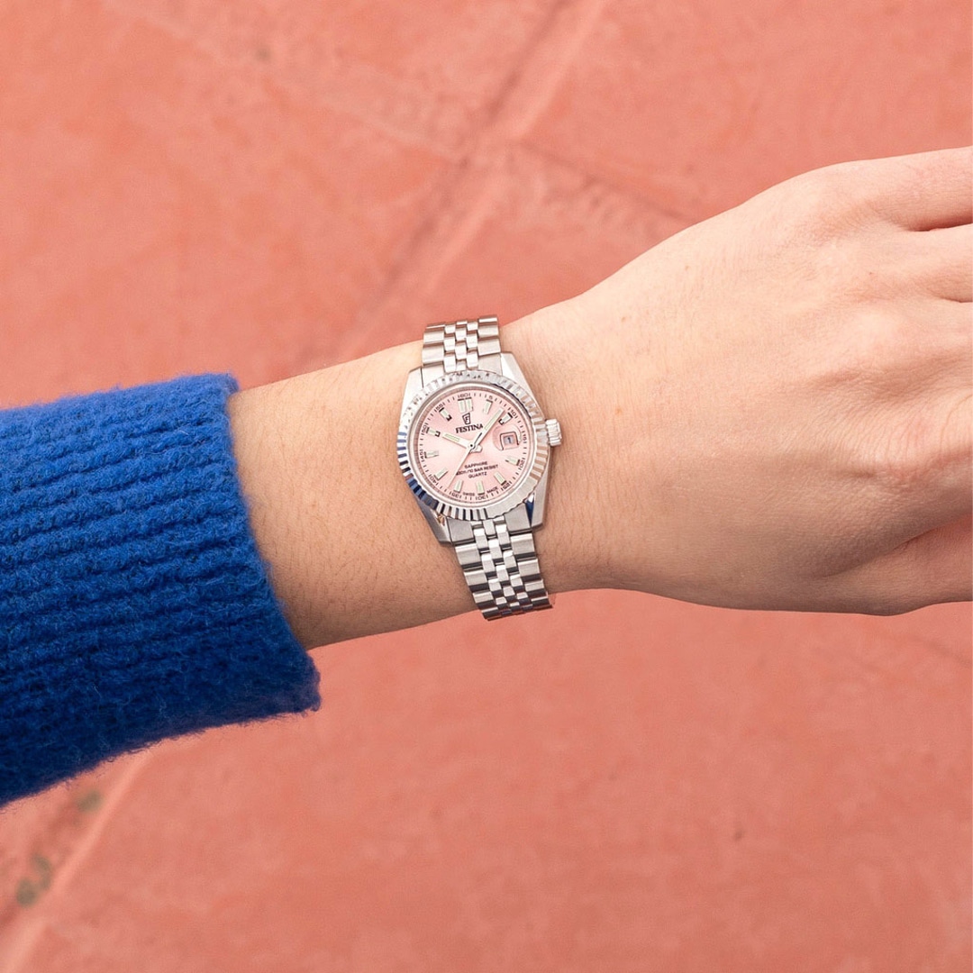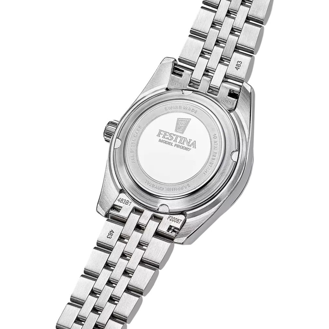 Die Festina Swiss Classic Steel vereint dezente Raffinesse mit der Präzision Schweizer Uhrmacherkunst. Ihr schlankes 29-mm-Edelstahlgehäuse, das Saphirglas und das harmonisch abgestimmte Armband machen sie zur perfekten Begleiterin für Frauen mit Sinn für klassische Schönheit. Ein stilvolles Statement – zurückhaltend, aber ausdrucksstark.