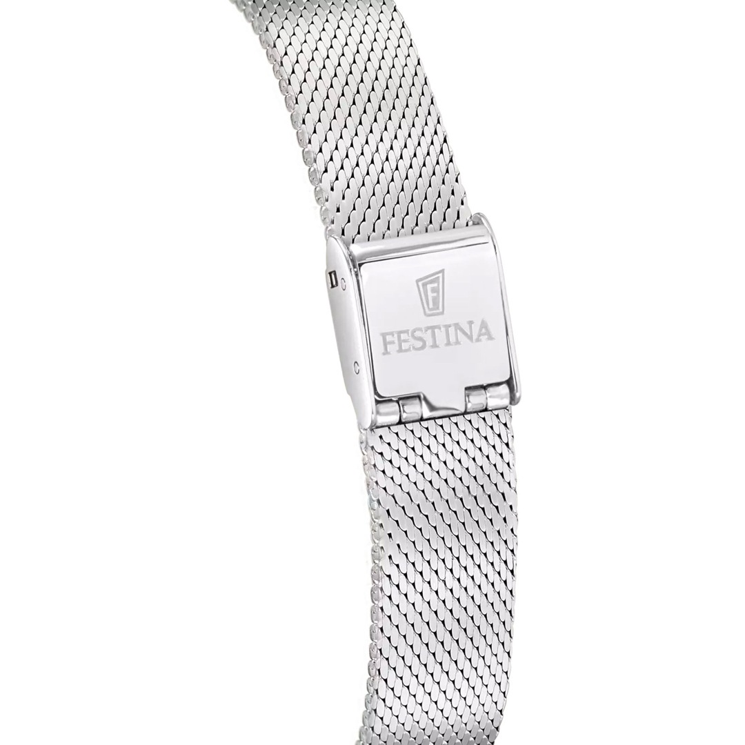 Die Festina Swiss Grace vereint dezente Raffinesse mit der Präzision Schweizer Uhrmacherkunst. Ihr schlankes 32-mm-Edelstahlgehäuse, das Saphirglas und das harmonisch abgestimmte Edelstahlband machen sie zur perfekten Begleiterin für Frauen mit Sinn für klassische Schönheit. Ein stilvolles Statement – zurückhaltend, aber ausdrucksstark.