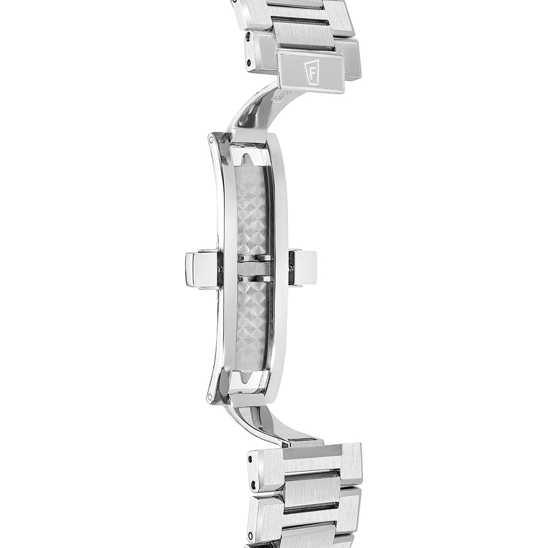 Ein kraftvoller Auftritt, der architektonisches Design und "Swiss Made"-Präzision vereint. Das 42-mm-Edelstahlgehäuse besticht durch seine markante, geometrische Lünette, die der Uhr einen unverwechselbaren Charakter verleiht. Das Zifferblatt zeugt mit seiner raffinierten Struktur und den applizierten Indizes von hoher Detailverliebtheit und bietet eine Datumsanzeige für beste Alltagstauglichkeit. Im Inneren schlägt das Herz der Uhr: das renommierte Schweizer Automatik-Kaliber Soprod P024, das für seine Zuverlässigkeit und eine Gangreserve von 38 Stunden bekannt ist. Ein ultra-kratzfestes Saphirglas schützt diesen hochwertigen Zeitmesser.