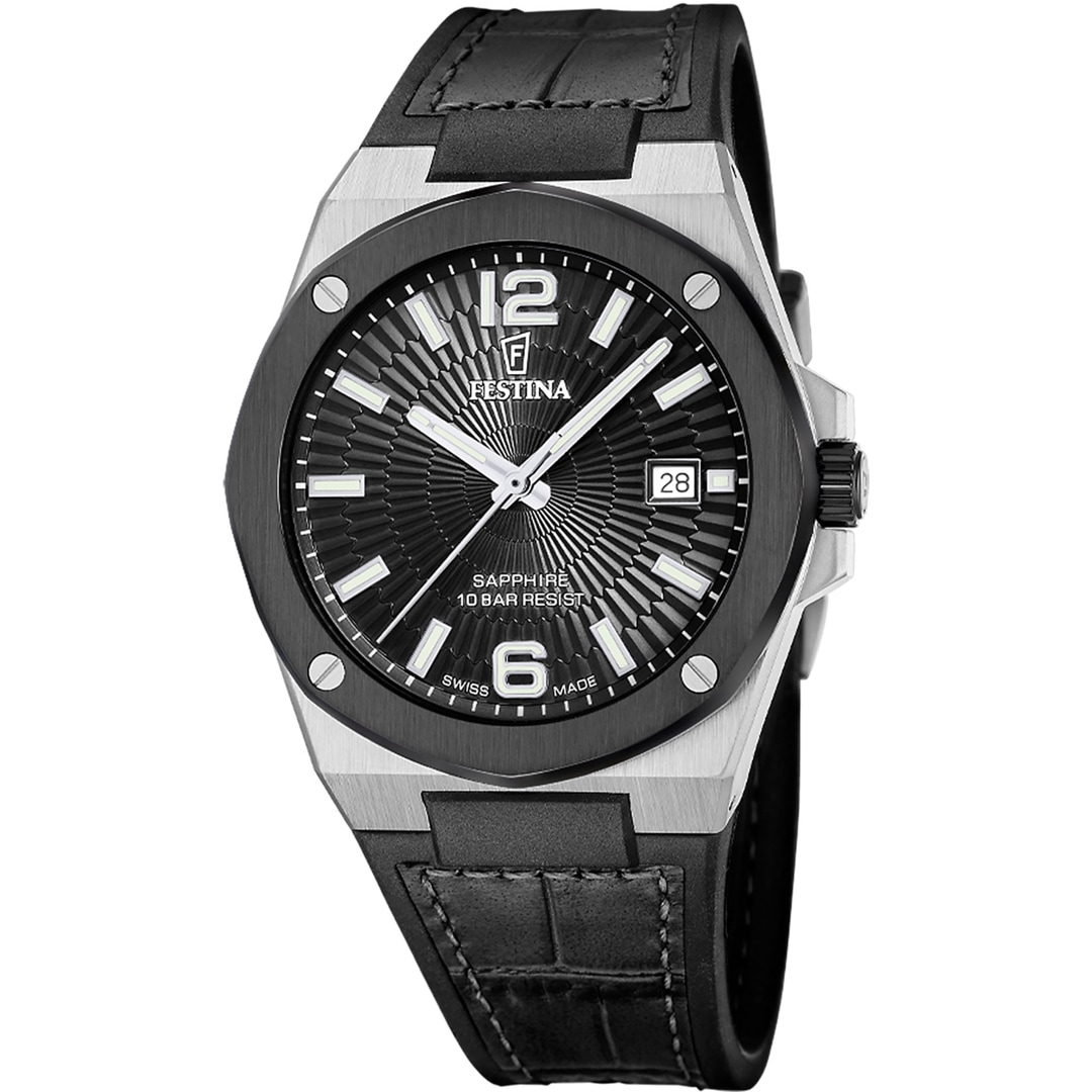 Eleganz, Präzision und Charakter kennzeichnen diese Uhr aus der Kollektion Vallée von Festina. Ausgestattet mit einem Schweizer Uhrwerk und Chronographenfunktionen, zeichnet sich dieses Modell durch sein robustes achteckiges Stahlgehäuse und sein strukturiertes Zifferblatt mit grosser optischer Tiefe aus. Das Saphirglas garantiert eine hohe Kratzfestigkeit, während das Armband aus für Komfort und Wertigkeit sorgt. Ein Zeitmesser für alle, die Authentizität und Schweizer Uhrmacherkunst zu schätzen wissen.