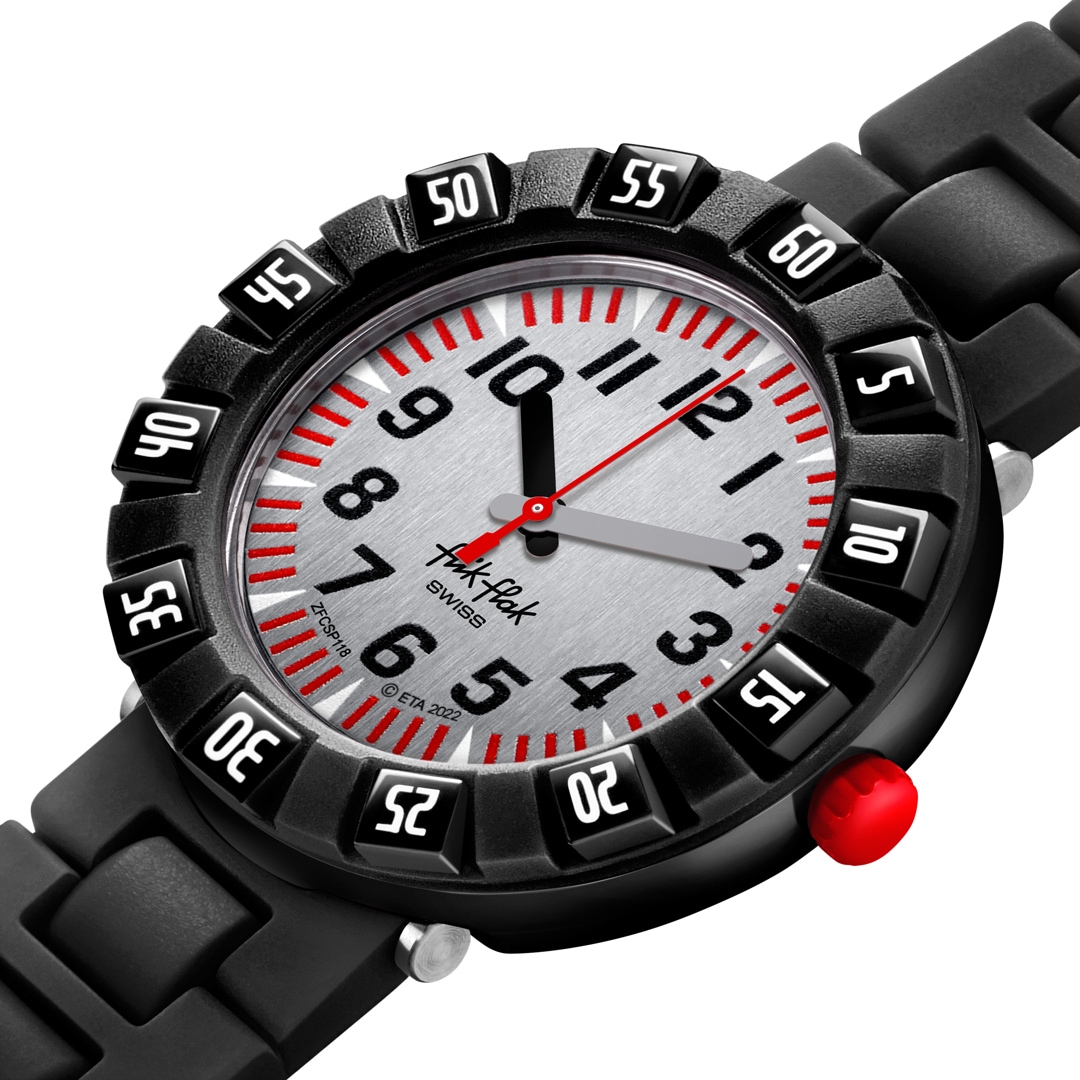Jede Flik Flak Kinderuhr ist ein Schweizer Qualitätsprodukt, das höchsten Qualitätsansprüchen genügt. Dies gilt auch für das präzise Quarzwerk, das die Uhr zum Ticken bringt. Schliesslich kann man nie pünktlich genug sein. Widerstandsfähige Kunststoffgehäuse, polierbares Kunststoffglas sowie Stoss- und Wasserfestigkeit sorgen für die nötige Robustheit. So bleiben die Kinderuhren beim Toben auf Spielplätzen und anderswo immer bestens geschützt.