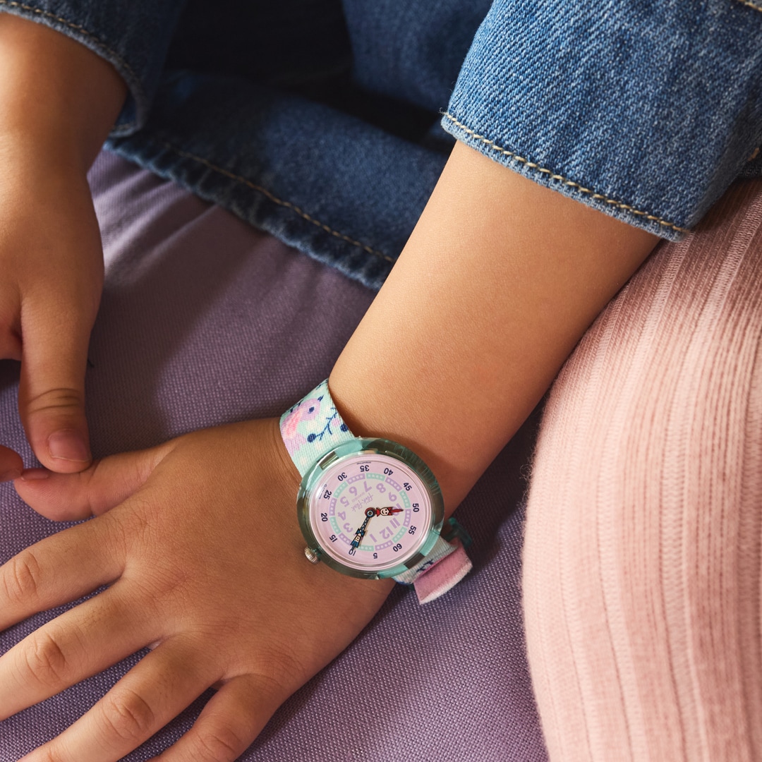 Jede Flik Flak Kinderuhr ist ein Schweizer Qualitätsprodukt, das höchsten Qualitätsansprüchen genügt. Dies gilt auch für das präzise Quarzwerk, das die Uhr zum Ticken bringt. Schliesslich kann man nie pünktlich genug sein. Widerstandsfähige Kunststoffgehäuse, polierbares Kunststoffglas sowie Stoss- und Wasserfestigkeit sorgen für die nötige Robustheit. So bleiben die Kinderuhren beim Toben auf Spielplätzen und anderswo immer bestens geschützt.
