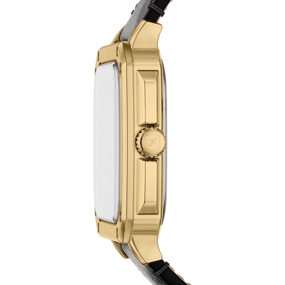 Diese Uhr Crosby ist ein moderner Klassiker mit zeitlosem Charme, der Form und Funktion vereint. Das rechteckige goldfarbene Edelstahlgehäuse umrahmt ein schwarzes Sunray-Zifferblatt mit Datumsanzeige. Das schwarze Lederband mit Dornschliesse lässt sich einfach verstellen und rundet das klassische Design ab. Eine vielseitige und unverwechselbare Uhr, die Deine Kollektion perfekt ergänzt.
