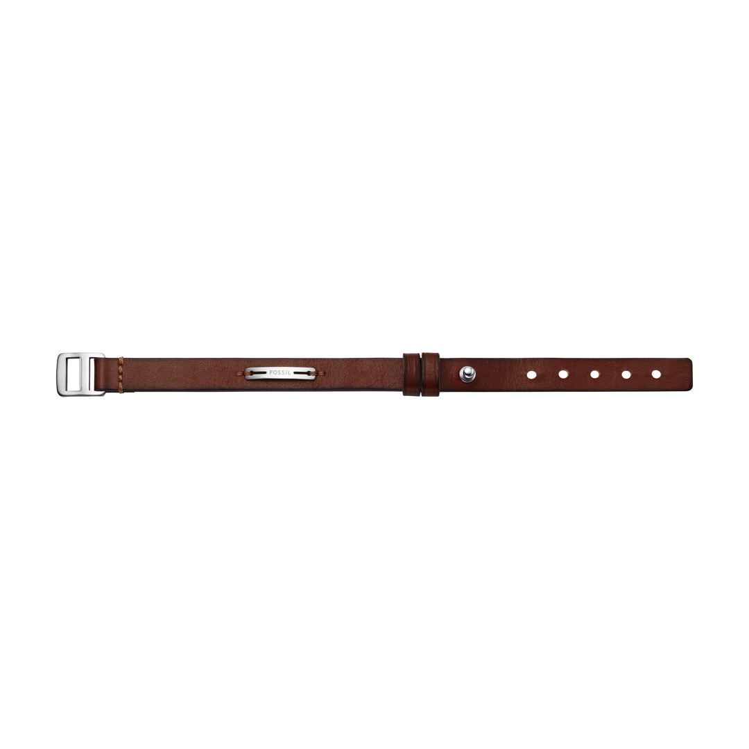 Sattes braunes Leder verleiht diesem Armband einen natürlichen Charakter. Der verstellbare Verschluss gewährleistet einen bequemen und sicheren Sitz. Dieses sorgfältig gefertigte Modell kombiniert robuste Materialien mit raffinierten Details und ist ein vielseitiges Accessoire.