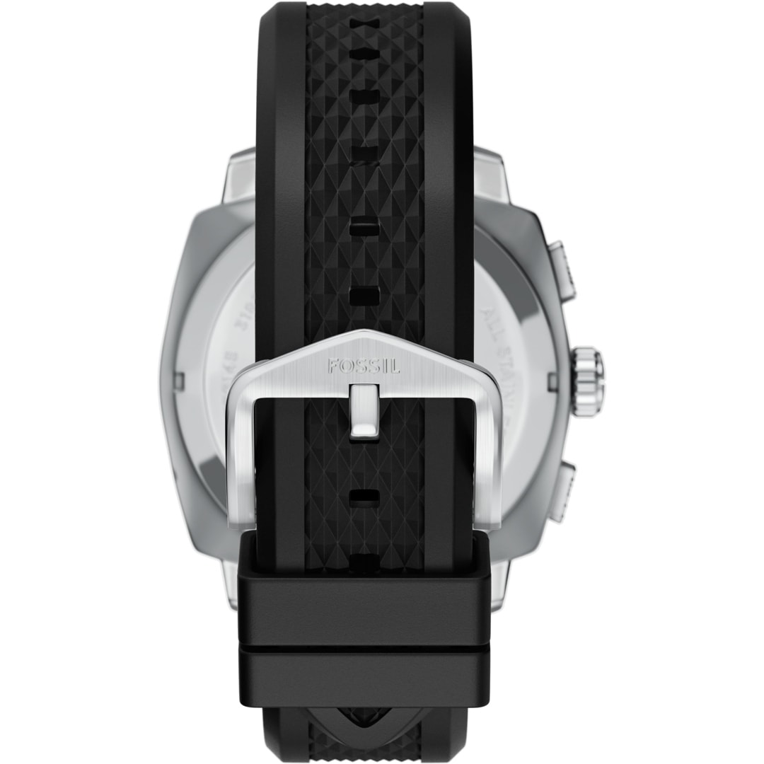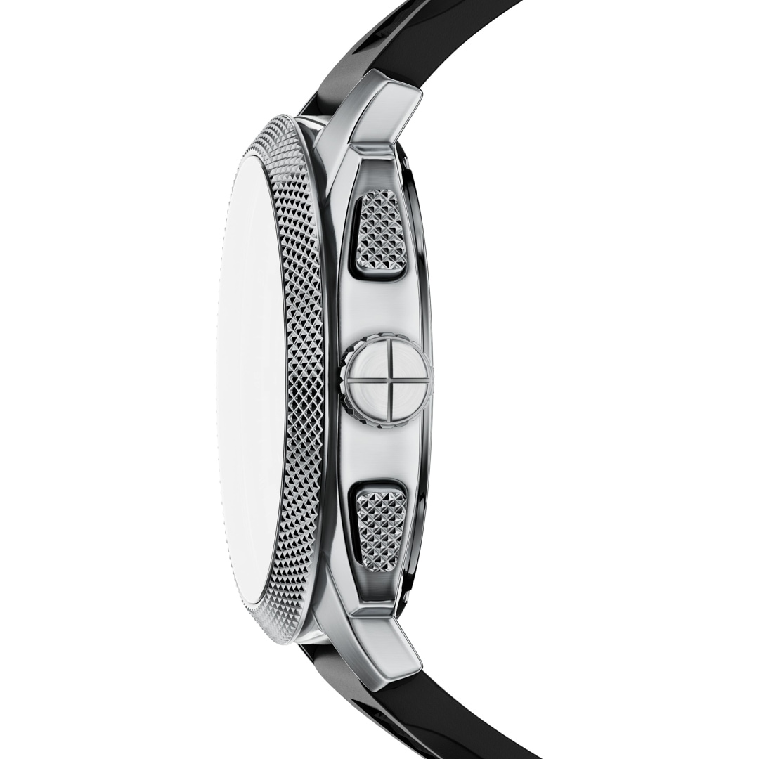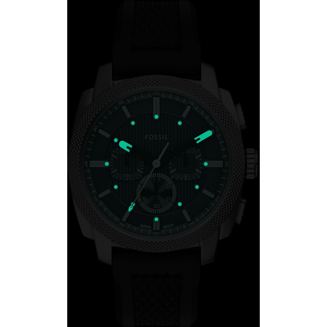 Diese Uhr Machine Chronograph zieht mit ihrer ausgefallenen gerändelten Lünette die Blicke auf sich. Das graue Zifferblatt weist eine Mischung aus satinierten, gebürsteten und strukturierten Finishs auf, die ihm Tiefe und Dimension verleihen. Die Hilfszifferblätter optimieren die Funktionalität und ergänzen das grosse, stromlinienförmige, runde Gehäuse. Ein präzises Quarzwerk mit Chronographenfunktion sowie ein robustes und praktisches schwarzes Silikonband runden den toughen Style ab. Diese Uhr ist zusammen mit einem schwarzen Lavastein-Perlenarmband das perfekte Geschenk.