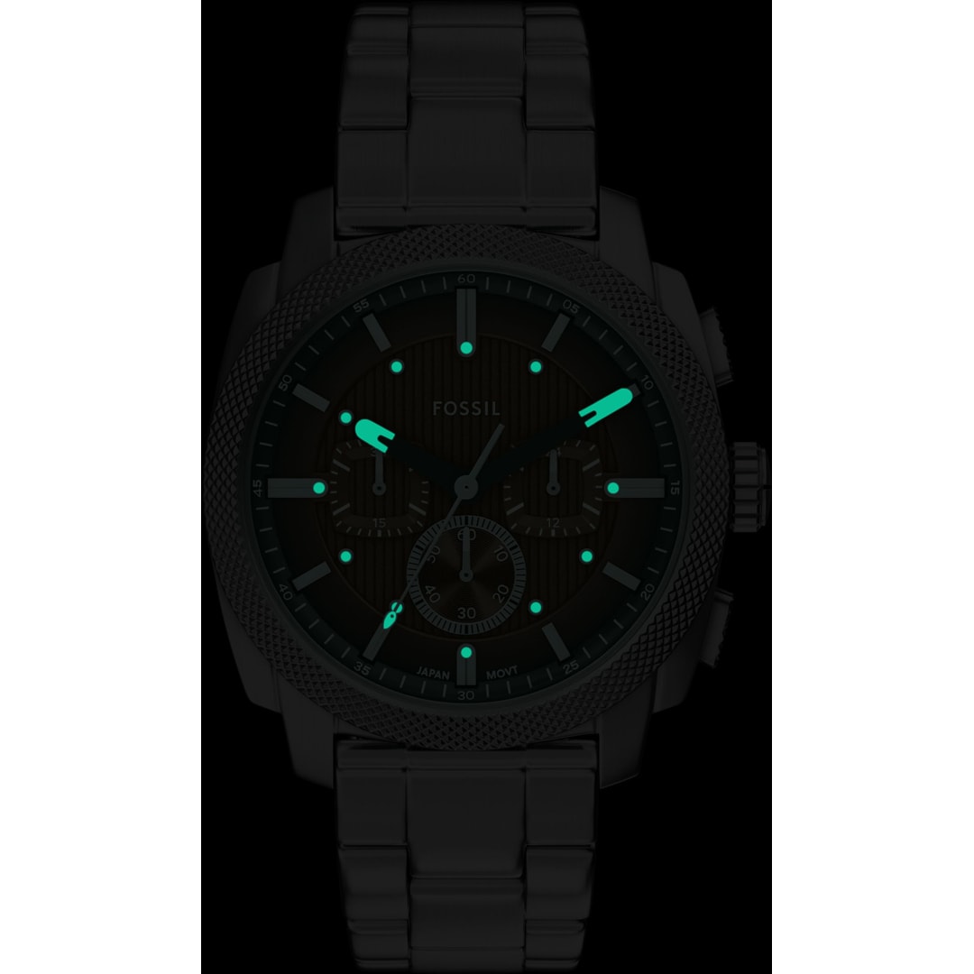 Diese Uhr Machine Chronograph hat eine ausgefallene gerändelte Lünette und ist von klassischen amerikanischen Maschinen inspiriert. Das grosse 44-mm-Gehäuse mit Mineralglas und tiefbraunem Zifferblatt hat strukturierte Details und ist unverkennbar maskulin. Ein präzises Quarzwerk mit Chronographenfunktion sowie ein strapazierfähiges Edelstahlband runden den toughen Style ab. Ein echtes Statement im Industrial-Look.