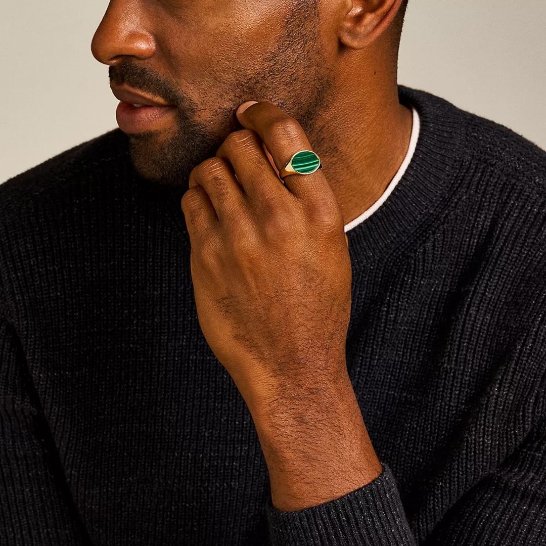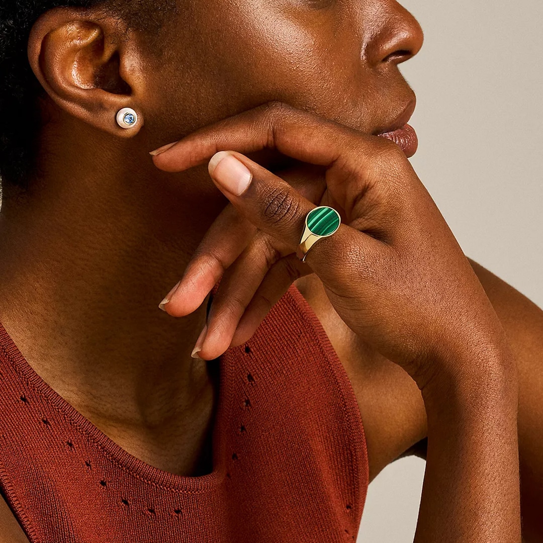 Dieser fein gearbeitete, goldfarbene Ring All Stacked Up mit grünem Malachitelement für jeden Tag gehört zu einer Menge von vielseitigsten Accessoires für jeden Stil. Trage ihn allein oder kombiniere ihn mit Deinen Lieblingsstücken.