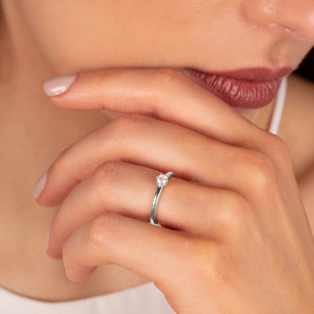 0.15 carats diamants bague de fiançailles or gris 750/18 ct en 6 griffes