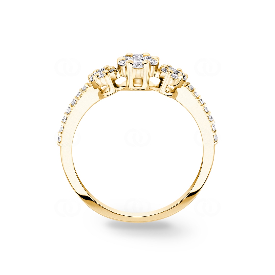 Vous cherchez un bijou qui raconte votre histoire unique ? La bague trilogie en or jaune 18 carats réalise ce rêve. Trois éléments ronds et sublimes, chacun serti de sept diamants pavés étincelants, symbolisent le lien infini entre le passé, le présent et le futur. Ces chefs-d'œuvre éclatants sont accompagnés de 14 autres diamants sur l'anneau, reflétant la lumière de l'amour et de l'espoir. Imaginez comment cette bague raconte une nouvelle histoire à chaque regard - votre histoire, qui brille pour toujours.