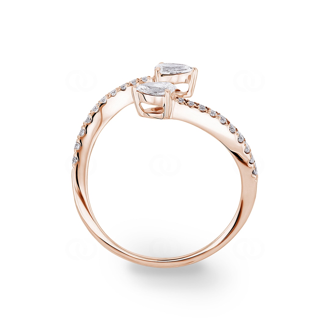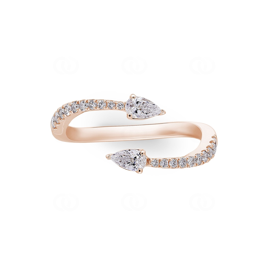 Découvrez un bijou qui séduit par sa forme exceptionnelle. Cette bague ouverte en or rosé 18 carats joue habilement avec l'asymétrie et la lumière. Au centre de l'attention, deux diamants taille poire se font face aux extrémités de l'anneau incurvé, conférant au bijou une allure à la fois dynamique et harmonieuse. Ce duo est accompagné de 20 fins brillants, sertis avec précision dans l'or, qui soulignent la ligne élégante du design. Cette bague est une déclaration de style qui allie haute qualité et design moderne – parfaite pour apporter une touche singulière à votre look, que ce soit au quotidien ou en tenue de soirée.