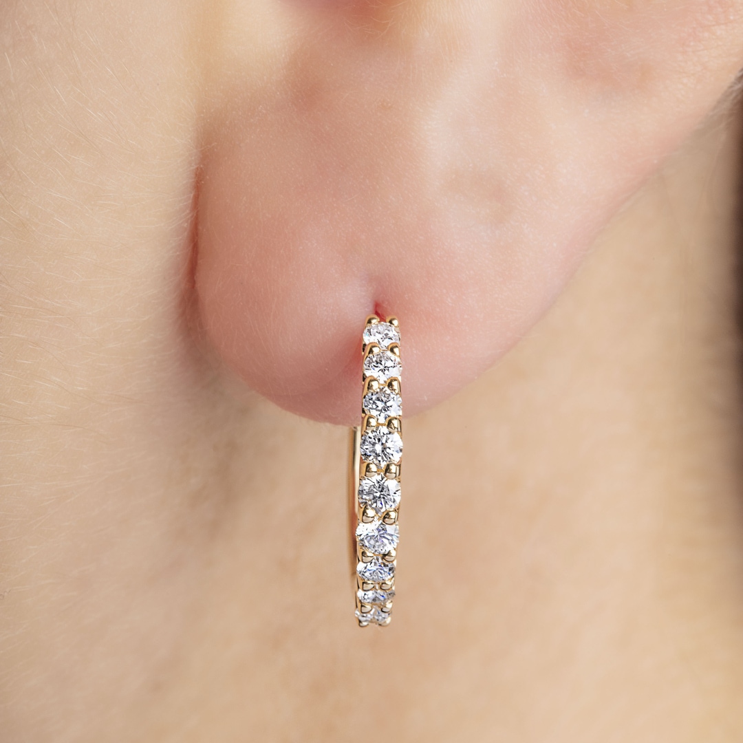 Style, élégance et design intemporel - ces attributs unissent ces magnifiques créoles. Elles sont en or jaune 18 carats, parfaitement complétées avec les 18 diamants étincelants. Ils donnent au bijou une touche extravagante et vous permettent de briller naturellement. Bien sûr, tous les créoles avec diamants sont livrés dans une boîte à bijoux élégante et sont accompagnés d'un certificat d'authenticité.
