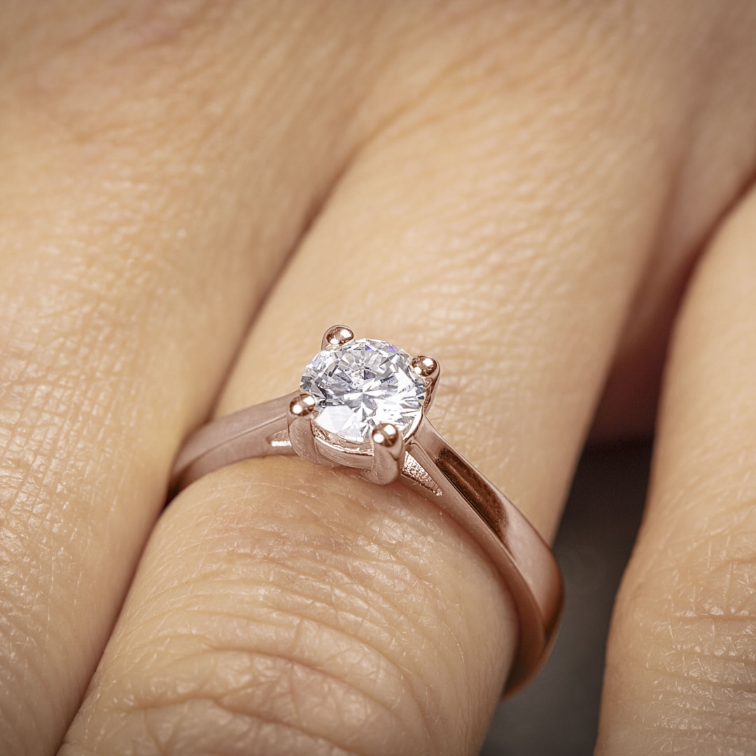 0.70 carats diamant GIA bague de fiançailles or rosé 750/18 ct en 4 griffes