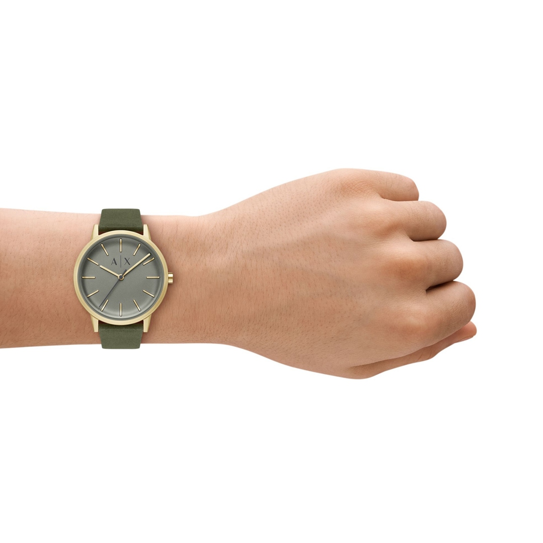 Élégante et sportive, la Cayde d'Armani Exchange attire tous les regards. Le boîtier en acier inoxydable massif, le verre minéral et l'étanchéité à 50 mètres, tout comme le bracelet haut de gamme, font partie des caractéristiques de qualité de cette montre pour homme exceptionnelle d'Armani Exchange, qui allie à la perfection sportivité décontractée et design classique. Place au style !