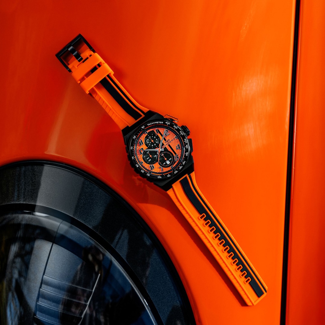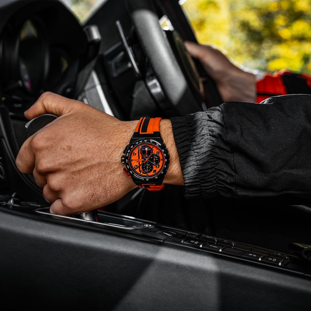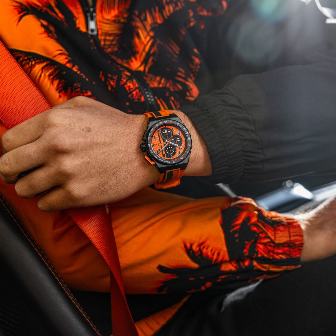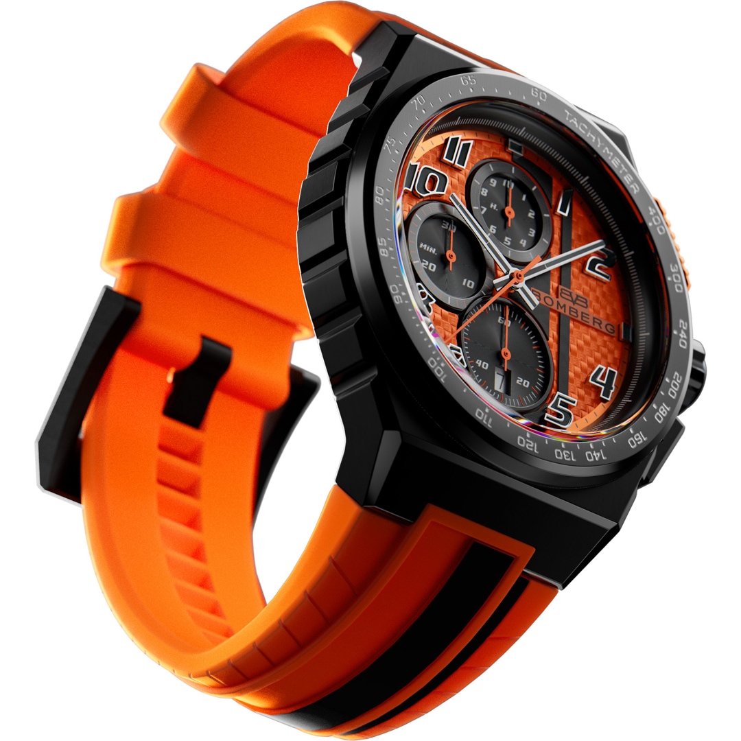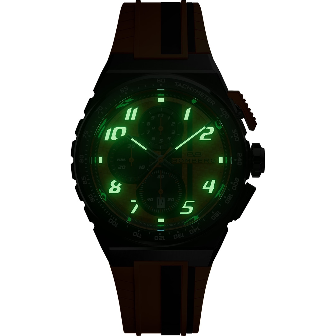 Découvrez l'évolution de la vitesse avec la Bomberg Apex Carbon. Conçu pour les accros à l'adrénaline, ce chronographe associe un cadran en carbone véritable à un boîtier robuste de 42 mm en acier inoxydable. Un mouvement à quartz suisse de haute précision capture chaque dixième de seconde de votre course. Équipée d'un verre saphir, d'une étanchéité jusqu’à 100 m et de finitions Luminova, l’Apex est taillée pour les conditions extrêmes. Son bracelet racing en silicone intégré, orné de bandes distinctives, garantit un style sans compromis sur la voie de dépassement. Audacieuse, précise, puissante.