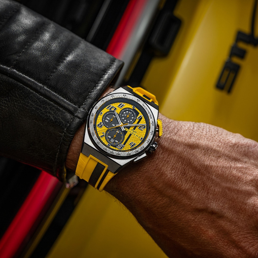 Découvrez l'évolution de la vitesse avec la Bomberg Apex Carbon. Conçu pour les accros à l'adrénaline, ce chronographe associe un cadran en carbone véritable à un boîtier robuste de 42 mm en acier inoxydable. Un mouvement à quartz suisse de haute précision capture chaque dixième de seconde de votre course. Équipée d'un verre saphir, d'une étanchéité jusqu’à 100 m et de finitions Luminova, l’Apex est taillée pour les conditions extrêmes. Son bracelet racing en silicone intégré, orné de bandes distinctives, garantit un style sans compromis sur la voie de dépassement. Audacieuse, précise, puissante.
