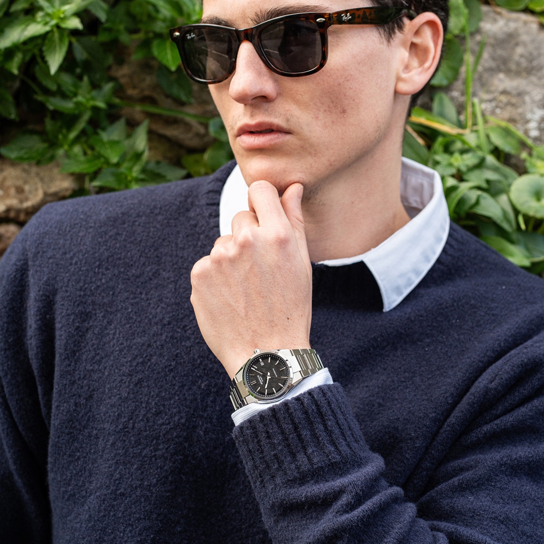 Sportive et élégante, la montre se compose d’un boîtier mince et compact de 38 mm seulement et d’un cadran à l’aspect texturé, une caractéristique rendue possible grâce à une technique spéciale d'électroformage. Le verre saphir inrayable à haute transparence offre une excellente lisibilité, tandis que les index en relief ainsi que la lunette et le boîtier affûtés viennent renforcer le raffinement dynamique du design de la montre.