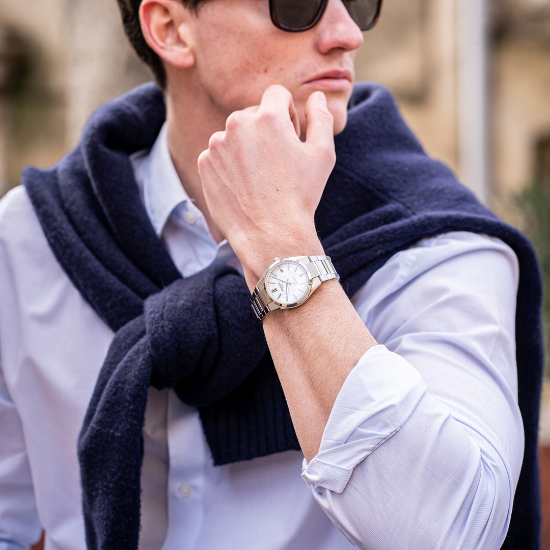 Sportive et élégante, la montre se compose d’un boîtier mince et compact de 38 mm seulement et d’un cadran à l’aspect texturé, une caractéristique rendue possible grâce à une technique spéciale d'électroformage. Le verre saphir inrayable à haute transparence offre une excellente lisibilité, tandis que les index en relief ainsi que la lunette et le boîtier affûtés viennent renforcer le raffinement dynamique du design de la montre.