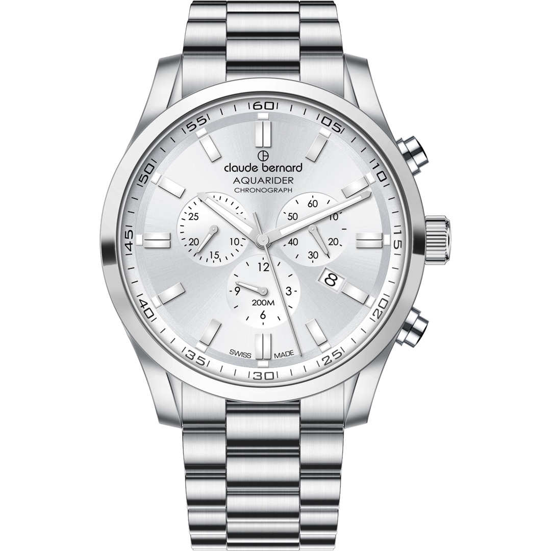 Une présence masculine et des performances sans compromis caractérisent ce garde-temps « Swiss Made ». Le chronographe Aquarider de Claude Bernard est conçu pour les hommes qui ne font aucun compromis. Son boîtier de 44 mm en acier inoxydable massif est conçu pour durer et offre une étanchéité impressionnante de 200 mètres. Que ce soit pour la natation, la voile ou dans un quotidien dynamique – l'eau ne lui fait pas peur.