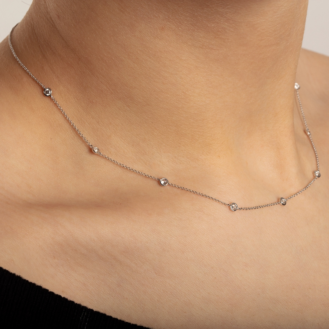 - Un collier délicat et magnifique aux diamants subtilement étincelants qui attire tous les regards ! Un accroche-regard qui attire beaucoup de compliments. Il a l'air fantastique en soi, mais il a également fière allure en combinaison avec une deuxième chaîne pour changer. Je suis un nouveau client enthousiaste et très enthousiasmé par l'excellent service et le traitement simple. (Posté le 21.05.2023)