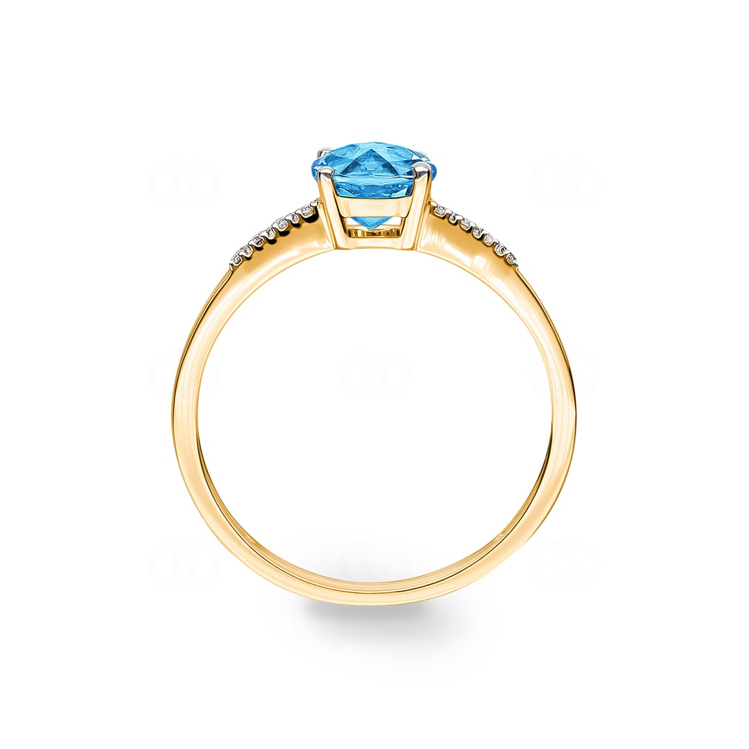 Bague or jaune 750/18 ct avec topaze bleue ronde et diamants 0.02 ct H/si