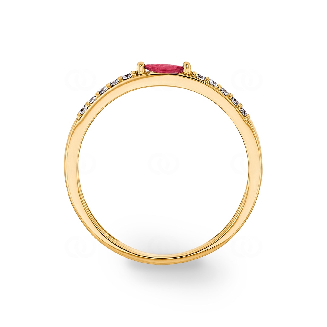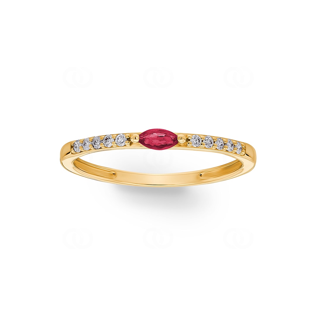 Cette bague pour femme exquise impressionne par son rubis éclatant, dont la couleur vive symbolise la force, l'amour et la puissance. Le rubis est harmonieusement complété par cinq diamants scintillants de chaque côté, représentant ensemble un poids total de 0,08 ct, ce qui confère une note élégante à la bague filigrane. Portez ce bijou pour exprimer votre force intérieure et votre passion, ou offrez-le à une personne spéciale pour symboliser vos sentiments profonds. Une bague qui ne séduit pas seulement par sa beauté, mais aussi par son message émotionnel—parfaite pour des moments inoubliables qui resteront gravés dans votre cœur.