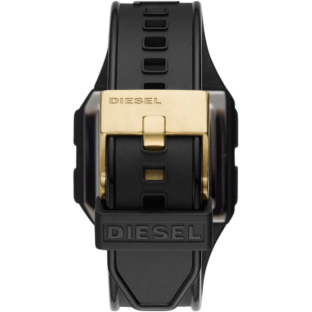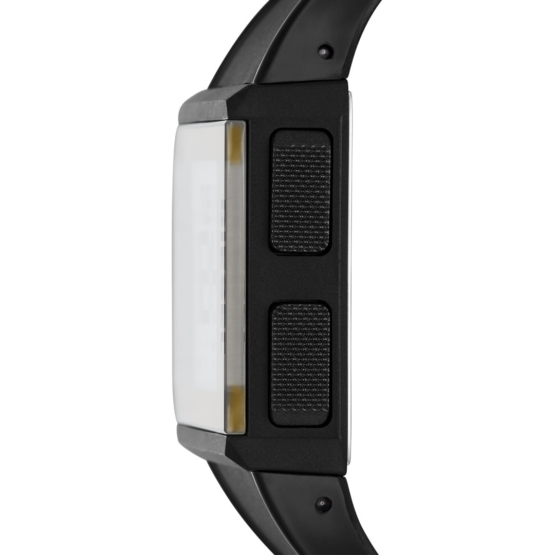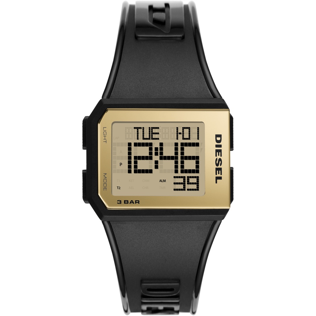 La montre numérique Chopped 32,5x38mm présente un boîtier noir mat, un cadran miroir en or, et un bracelet en silicone pressé avec une boucle en or.