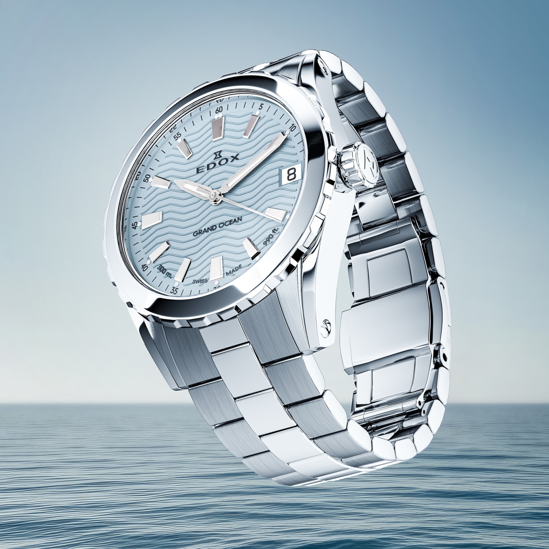 La collection Edox Grand Ocean incarne l'esprit puissant des mers et reflète le lien profond de la Maison avec son héritage maritime. Depuis 1884, en tant que manufacture horlogère suisse de type boutique et familiale, Edox est synonyme d'une tradition et d'un savoir-faire artisanal exceptionnels. Le boîtier profilé repensé allie une élégance intemporelle à une âme sportive, assurant une silhouette moderne au poignet. L'un des points forts visuels est le cadran structuré orné d'un motif de vagues, qui capture à la perfection le mouvement dynamique de l'océan et son rythme. Protégé par un verre saphir bombé et équipé d'une couronne vissée, ce garde-temps offre une étanchéité impressionnante allant jusqu'à 300 mètres. Grâce au revêtement Superluminova sur les aiguilles, une précision absolue est garantie en toute circonstance. Un véritable « champion des mers » pour chaque instant.