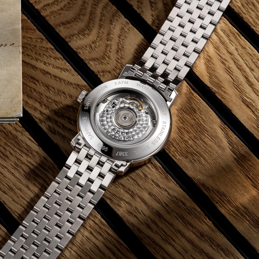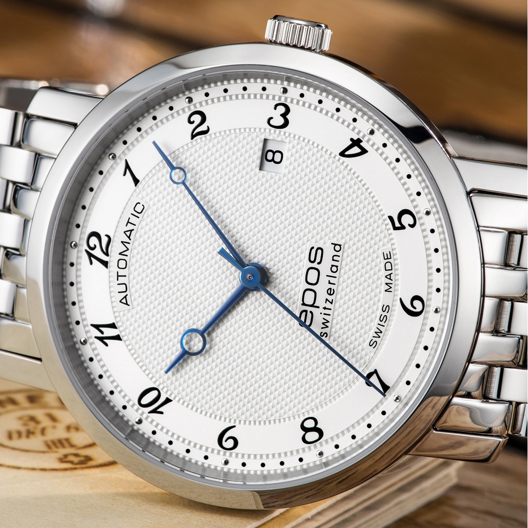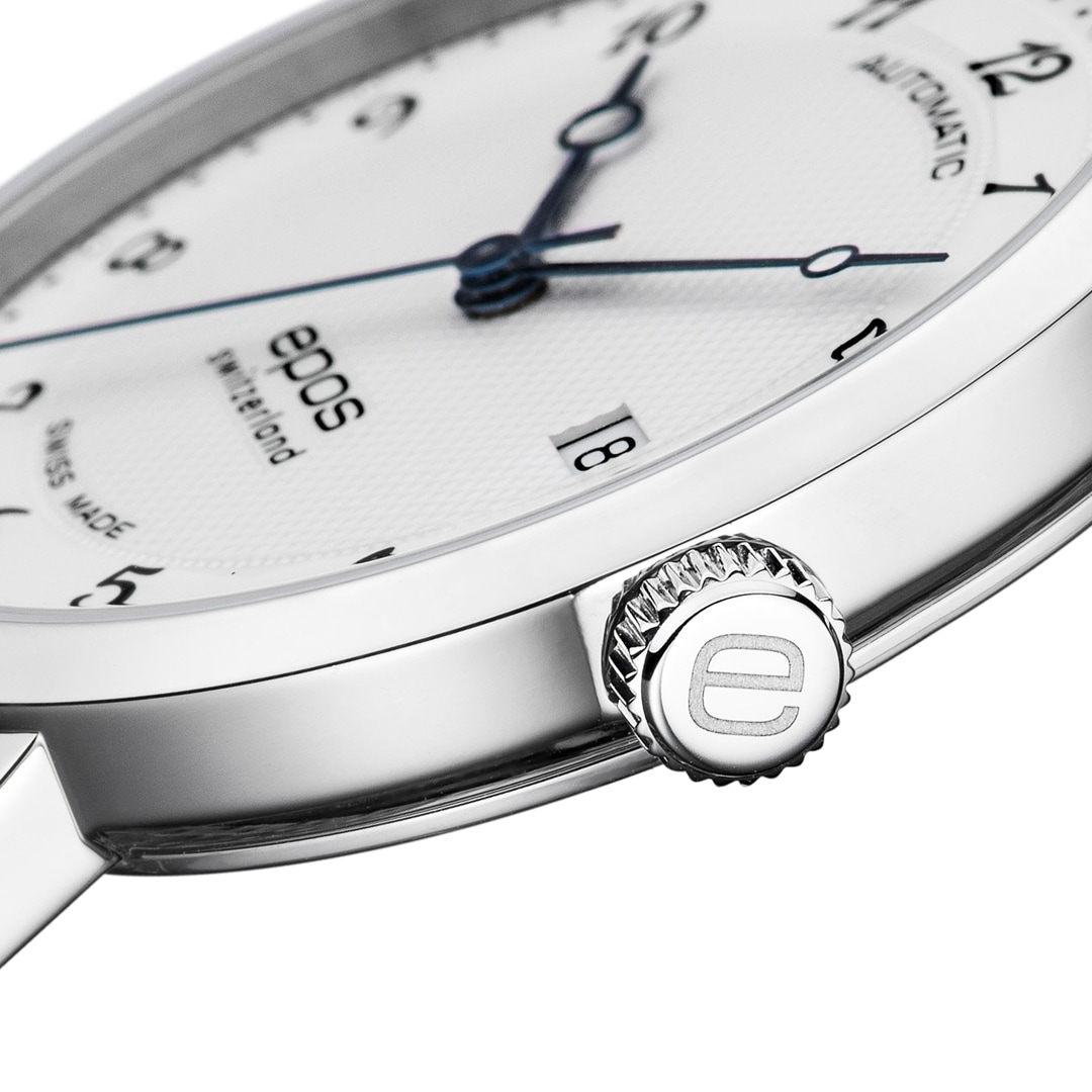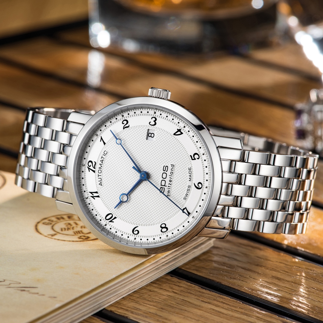 L’Epos Timeless 3387 Automatic allie élégance classique et savoir-faire horloger suisse. Son boîtier en acier inoxydable entièrement poli, doté d’un verre saphir inrayable et d’un fond transparent, met en valeur le mouvement Sellita SW300 de haute facture, entièrement décoré. Le perlage délicat sur le mouvement et le rotor révèle le souci du détail et la précision de l’horlogerie. Cette montre automatique élégante offre un style intemporel et raffiné, parfait pour les amateurs de mécanique suisse et de design épuré.