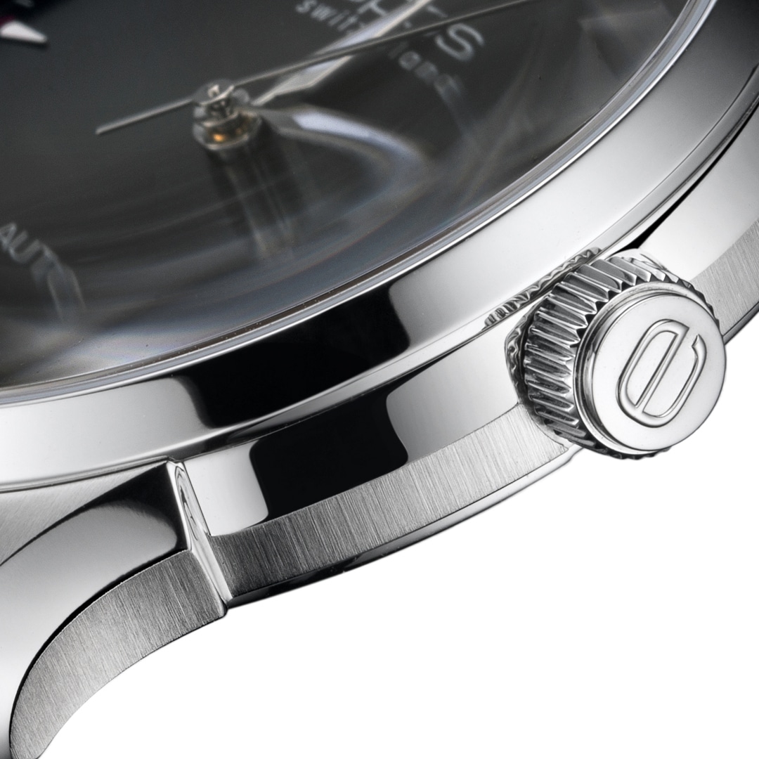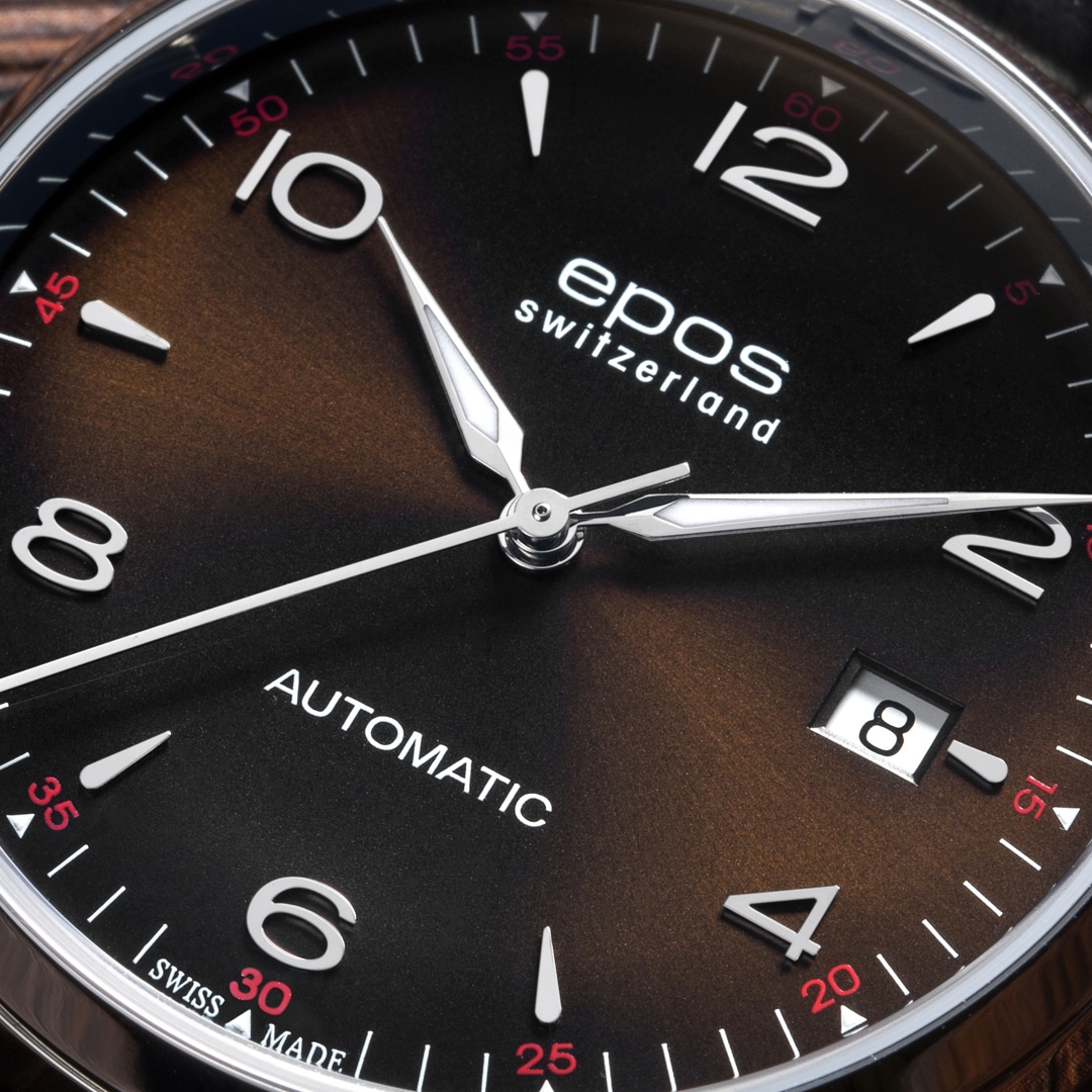 L'Epos Timeless 3427 Automatic Date est une montre automatique au style rétro, équipée d'un mouvement ETA 2824 décoré de première qualité. Son boîtier en acier inoxydable entièrement poli, associé à un verre saphir inrayable et un fond transparent, allie robustesse et élégance. Le cadran au design rétro, avec une alternance de chiffres arabes appliqués et d'index, confère à cette montre un charme intemporel. Une véritable pièce de collection, alliant simplicité raffinée et qualité exceptionnelle.