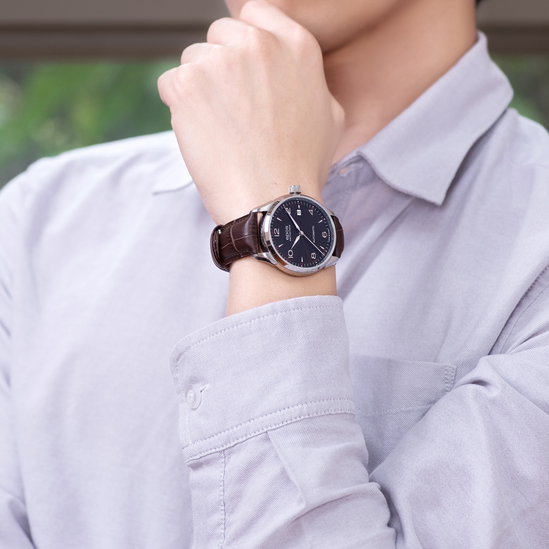 L'Epos Timeless 3427 Automatic Date est une montre automatique au style rétro, équipée d'un mouvement ETA 2824 décoré de première qualité. Son boîtier en acier inoxydable entièrement poli, associé à un verre saphir inrayable et un fond transparent, allie robustesse et élégance. Le cadran au design rétro, avec une alternance de chiffres arabes appliqués et d'index, confère à cette montre un charme intemporel. Une véritable pièce de collection, alliant simplicité raffinée et qualité exceptionnelle.