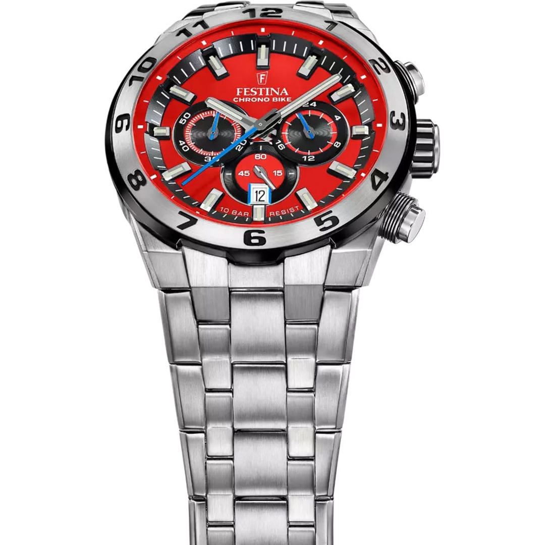 La montre Festina Chrono Bike pour hommes est un excellent complément à la collection exclusive Chrono Bike. Elle symbolise l'harmonie entre le raffinement et la praticité. Cette montre a été soigneusement conçue pour l'homme moderne qui apprécie l'élégance sous sa forme la plus fonctionnelle. Le boîtier, fabriqué en acier inoxydable 316L, se caractérise par sa robustesse et sa résistance exceptionnelle à la corrosion, ce qui garantit que la montre conserve son éclat et sa résistance au fil du temps. Cet acier, connu pour sa longévité, est idéal pour un accessoire qui résiste aux exigences d'une utilisation quotidienne.