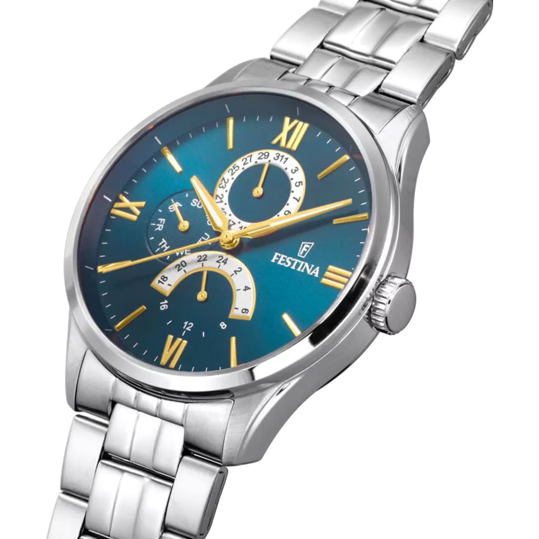 Un regard dans le passé - La collection Klassik Retrograde de Festina confère à l'horlogerie de pointe une touche de nostalgie bien fondée en habillant la technologie moderne d'un design élégamment traditionnel. Le vintage est à la mode. La collection Klassik Retrograde comprend des montres pour hommes qui dégagent une atmosphère de classicisme pour tous ceux qui aiment le style rétro.