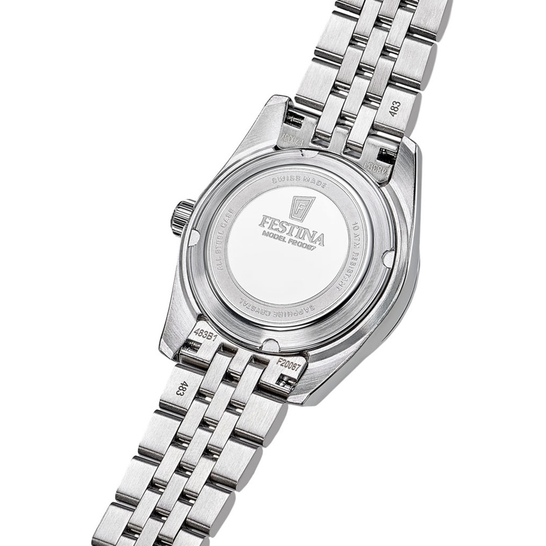 La Festina Swiss Classic Steel allie une sophistication discrète à la précision de l'horlogerie suisse. Son boîtier élancé en acier inoxydable de 29 mm, son verre saphir et son bracelet harmonieux en font le compagnon idéal des femmes qui apprécient la beauté classique. Une déclaration de style – discrète, mais expressive.