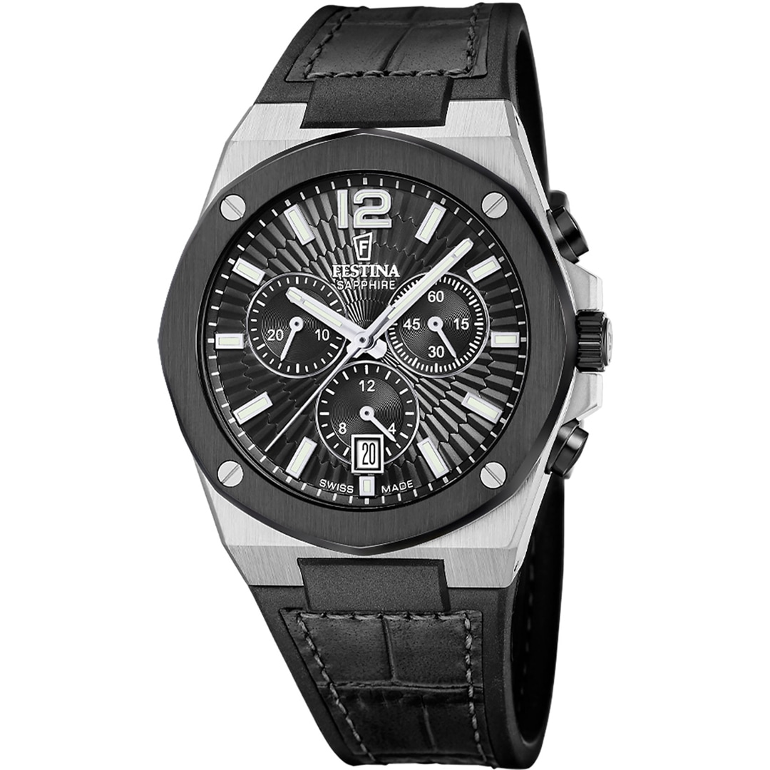Élégance, précision et caractère caractérisent cette montre de la collection Vallée de Festina. Équipé d'un mouvement suisse et de fonctions chronographe, ce modèle se distingue par son boîtier octogonal robuste en acier et son cadran structuré offrant une grande profondeur optique. Le verre saphir garantit une grande résistance aux rayures, tandis que le bracelet en cuir véritable assure confort et qualité. Un garde-temps pour tous ceux qui apprécient l'authenticité et l'art horloger suisse.