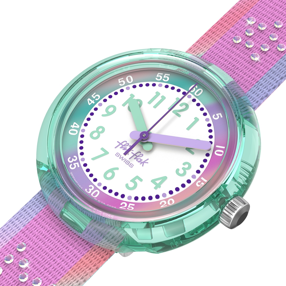 Chaque montre Flik Flak pour enfants est fabriquée en Suisse et répond aux plus strictes normes de qualité, jusqu'à la précision du mouvement à quartz qui leur donne vie. On n'est jamais trop jeune pour être à l'heure ! Répondant aux meilleurs critères de solidité, les boîtiers en plastique résistant, dotés d'un verre en plastique polissable, sont étanches et résistants aux chocs afin de survivre à toutes les aventures des terrains de jeux et bien au-delà.