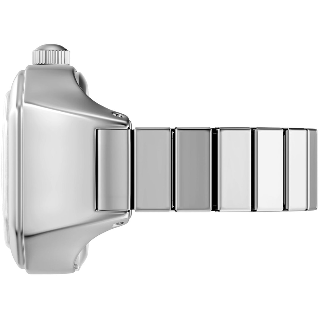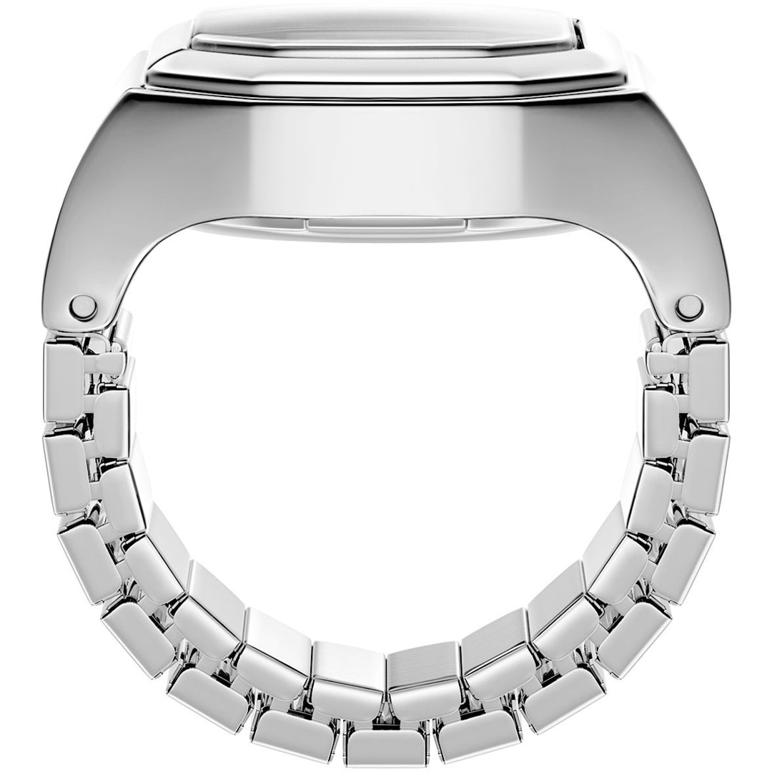 Cette montre est un mélange unique entre joaillerie et horlogerie. Le boîtier et le bracelet octogonaux en acier inoxydable argenté confèrent à la montre un look élégant et harmonieux. Le cadran argenté texturé apporte une profondeur et un contraste subtils, tandis que les deux aiguilles lui confèrent un charme minimaliste. Sa taille compacte est compensée par un bracelet élastique qui permet un ajustement personnalisé et confortable.