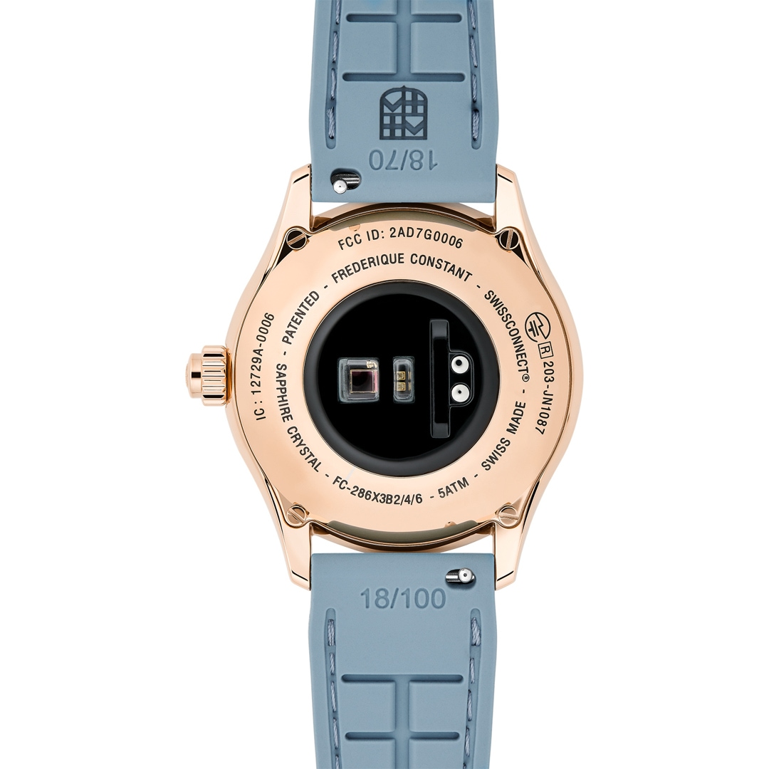 En 2020, la Maison Frederique Constant est fière de présenter sa nouvelle montre connectée, la Smartwatch Vitality, riche en technologie et abritant un cadran digital révélé à la demande. En supplément des fonctions qui ont fait le succès de ses aînées, la Smartwatch Vitality se dote d’une innovation majeure : la fréquence cardiaque est désormais mesurée au poignet, grâce à l’intégration d’un capteur de dernière génération développé par Philips Wearable Sensing.
