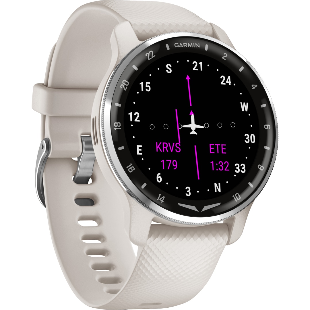 Restez à l'heure lorsque vous voyagez avec une aiguille UTC sur le cadran de la montre et plusieurs affichages de fuseaux horaires. - Connectivité avec l'application Garmin Pilot™