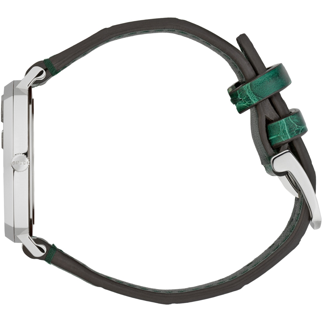 Votre montre Grip sera livrée dans un emballage en édition spéciale avec jacquard fleuri sur le dessus, disponible avec quatre motifs différents inspirés par l’univers du prêt-à-porter Gucci. Orné d’un délicat motif floral doré, le coffret sera sélectionné individuellement pour votre montre et accompagné d’un coussin en velours pour l’accueillir.