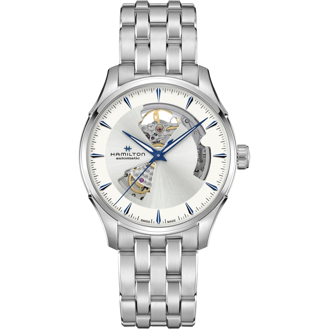 Le savoir-faire horloger classique rencontre le design contemporain dans cette Jazzmaster Open Heart Automatic bleue et argent. Les découpes précises sur le cadran de 40mm offrent un aperçu du mouvement de fabrication suisse et confèrent une personnalité affirmée à cette montre sophistiquée.