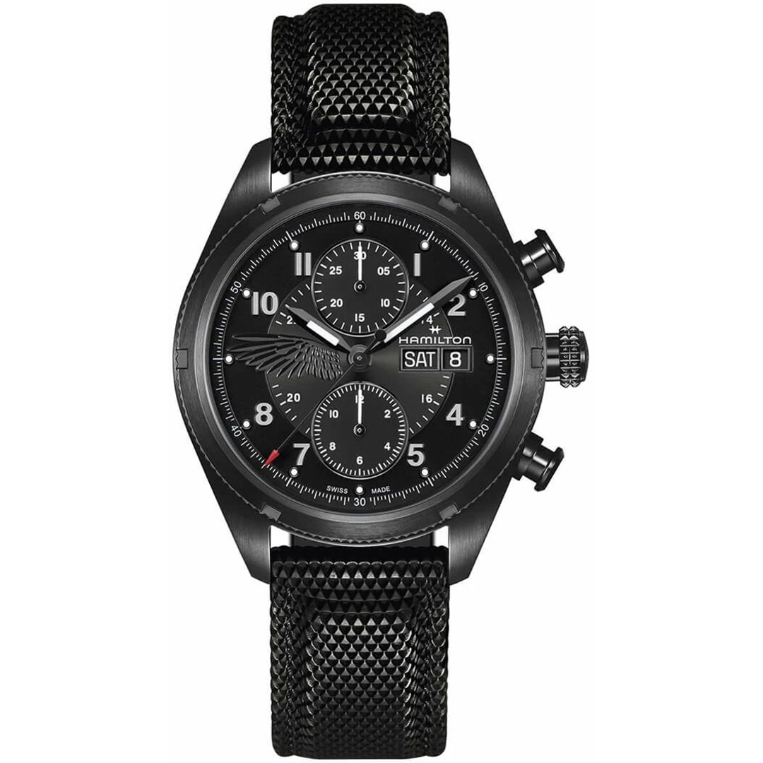 Le boîtier de 42 mm au look « stealth » noir est conçu pour les conditions les plus extrêmes. Des détails marquants, tels que les poussoirs en forme de cartouches, soulignent le caractère tactique de cette montre. Un point fort particulier réside dans le fin emblème ailé à 9 heures qui, dans le jeu, rend hommage aux camarades tombés au combat. À l'intérieur, le mouvement automatique H-21 précis assure une fiabilité absolue avec 60 heures de réserve de marche.