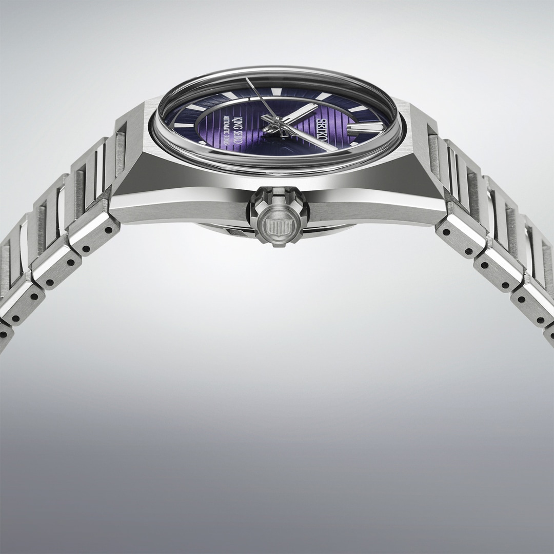 La King Seiko VANAC Titan Tokyo Highway allie une légèreté sans compromis à l'énergie palpitante de la métropole japonaise. Inspiré par le réseau dynamique des autoroutes urbaines nocturnes, le cadran violet profond de la référence HKF001J1 capture l'atmosphère dense et électrisante de Tokyo à la tombée de la nuit. Le boîtier au caractère bien trempé, façonné en titane résistant, séduit par sa nuance argentée naturelle et légèrement texturée, assurant une allure à la fois épurée, sportive et légère comme une plume. Ce design expressif est parachevé par un nouveau motif radial sur le cadran qui confère à l'ensemble une profondeur graphique saisissante. Équipée du robuste calibre de pointe 8L45, d'une réserve de marche de 72 heures et d'une précision exceptionnelle, cette montre s'impose comme une déclaration magistrale de l'horlogerie moderne.