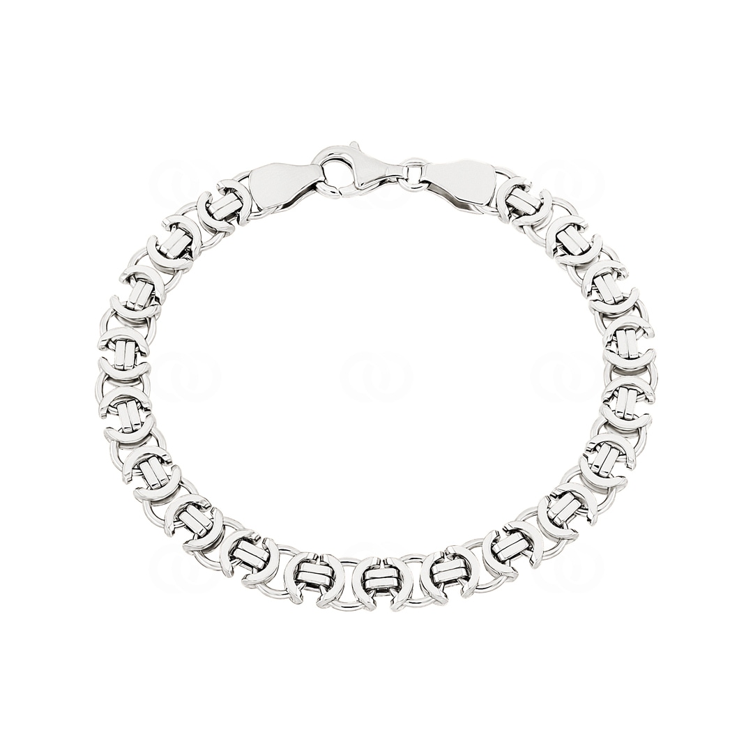 Bracelet de haute qualité, plat, en argent sterling 925, d'une largeur d'environ 7,20 mm (la largeur de la chaîne varie) et d'une épaisseur de 2,90 mm. Le bracelet peut être fermé facilement et rapidement grâce à un fermoir pratique en forme de homard. L'argent pur est très doux, c'est pourquoi ce bracelet a été allié au rhodium pour assurer sa dureté et sa durabilité. Ce bracelet majestueux et en même temps accrocheur peut être combiné de nombreuses façons et complète parfaitement les tenues décontractées et les tenues d'élégance classique. Le collier royal assorti complète le look élégant.