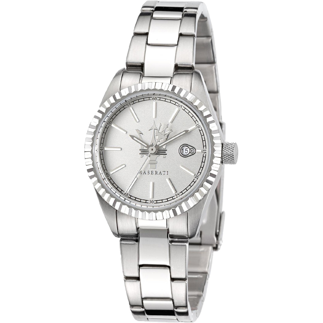 La perfection technique et le souci du détail que Maserati apporte à chacune de ses voitures se reflètent dans les montres au style unique. Avec des créations originales et raffinées, elles font écho aux éléments les plus légendaires de l'histoire et de la conception de la compagnie du trident. La Maserati pose un jalon en matière d'élégance et de sportivité ! Le cadran comporte de petits détails qui font battre plus vite le cœur d'une femme. Le noble cadran comporte un affichage de la date à 3 heures. Le cadran captive par son motif filigrane et offre un bon contraste avec le reste de la montre. L'agréable bracelet en acier inoxydable assure un grand confort de port et se glisse parfaitement autour du poignet. Avec une résistance à l'eau de 10 ATM (100m), votre nouveau compagnon est également bien protégé contre l'exposition quotidienne à l'eau.