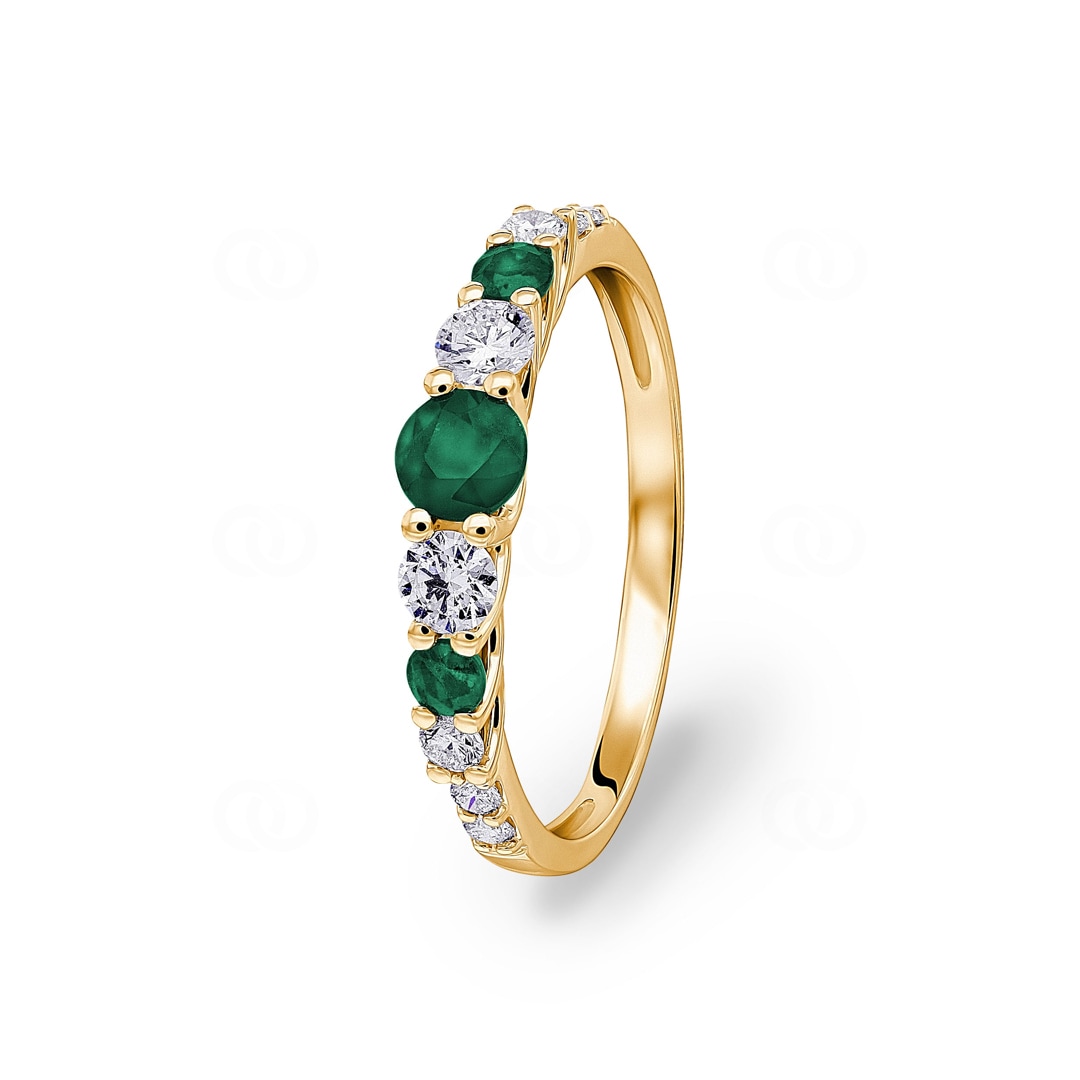 Bague Mémoire or jaune 750/18 ct avec émeraudes & diamants 0.35 ct H/si