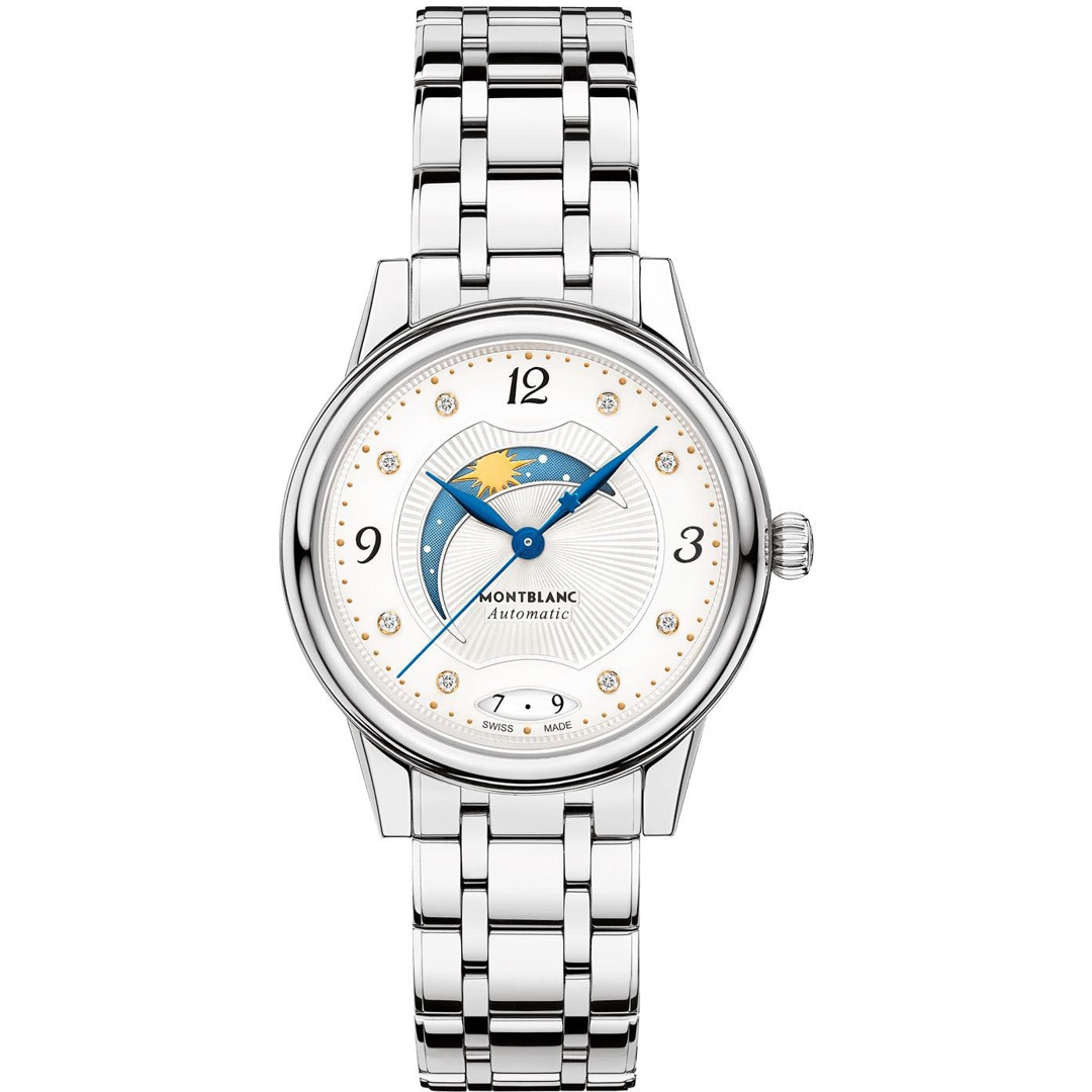 La montre Montblanc Bohème Day & Night est une alliée précieuse, délicieusement féminine, dotée d'une petite complication romantique. Le jour est indiqué par un joli bleu clair et un soleil doré tandis que la nuit est représentée par un ciel bleu sombre étoilé illuminé par une lune souriante couleur or. Le délicat cadran guilloché orné de chiffres arabes noirs de style floral et d'index en diamants est fabriqué dans le plus pur style horloger. L'élégant boîtier en acier de 30 mm est prolongé par des cornes intégrées aux courbes douces. Une montre intemporelle à la personnalité unique, qui répond aux attentes des femmes au goût raffiné.